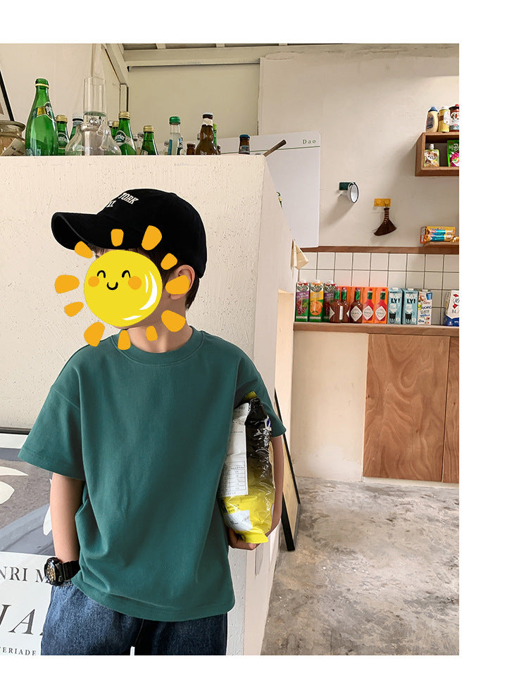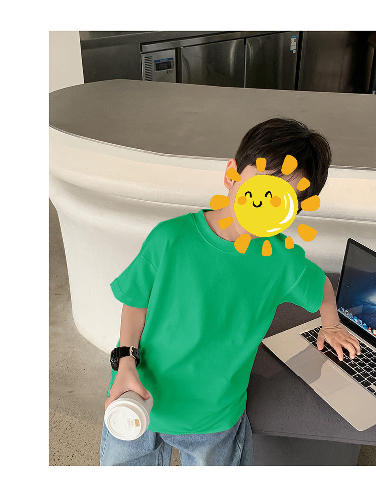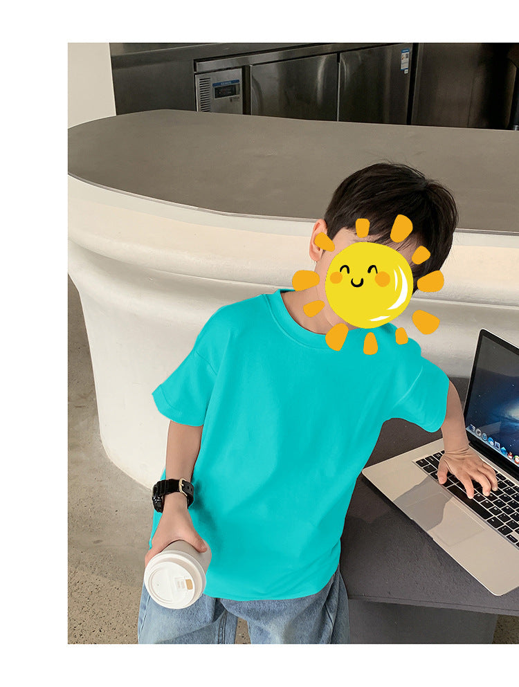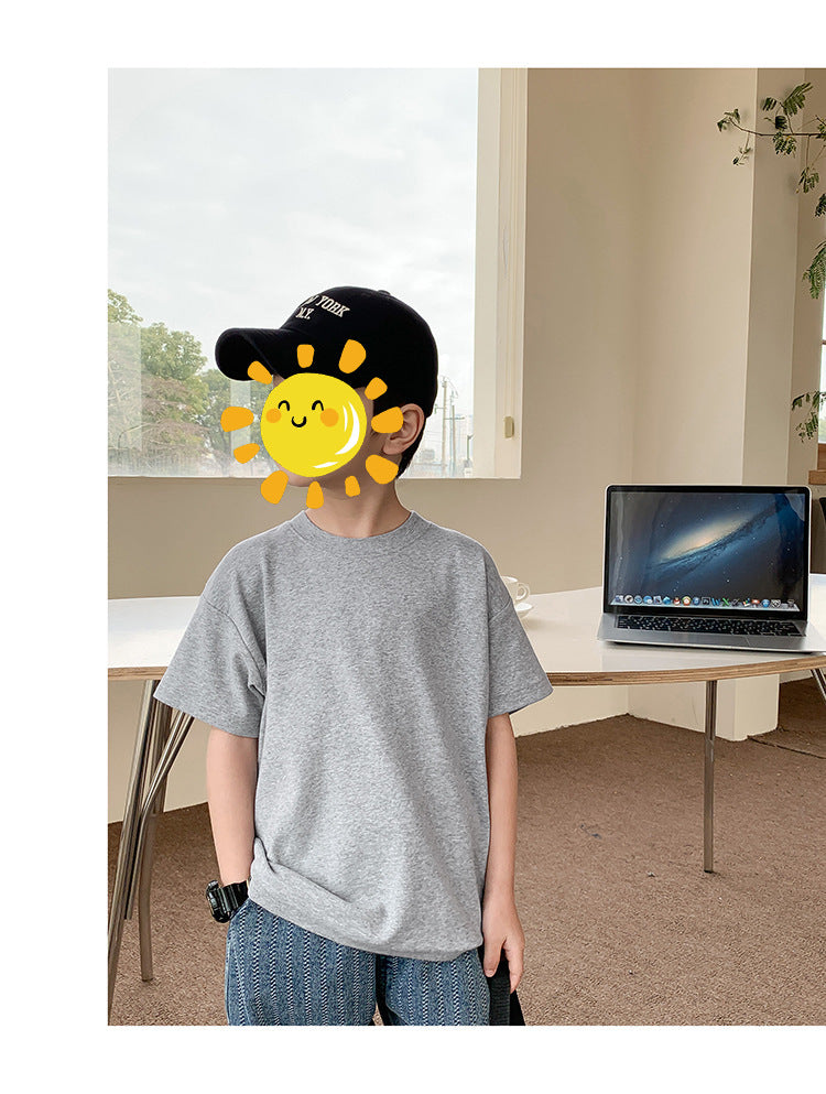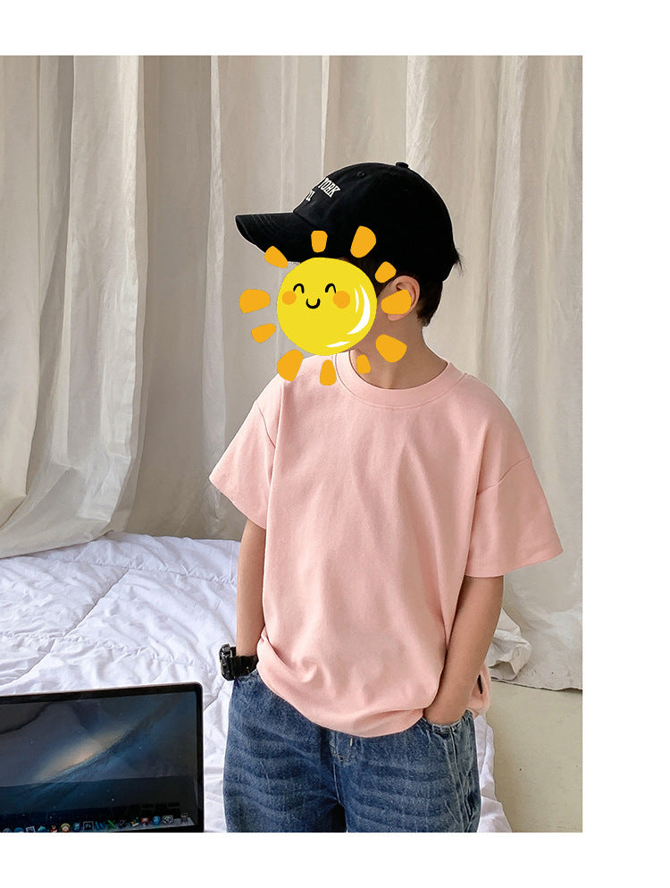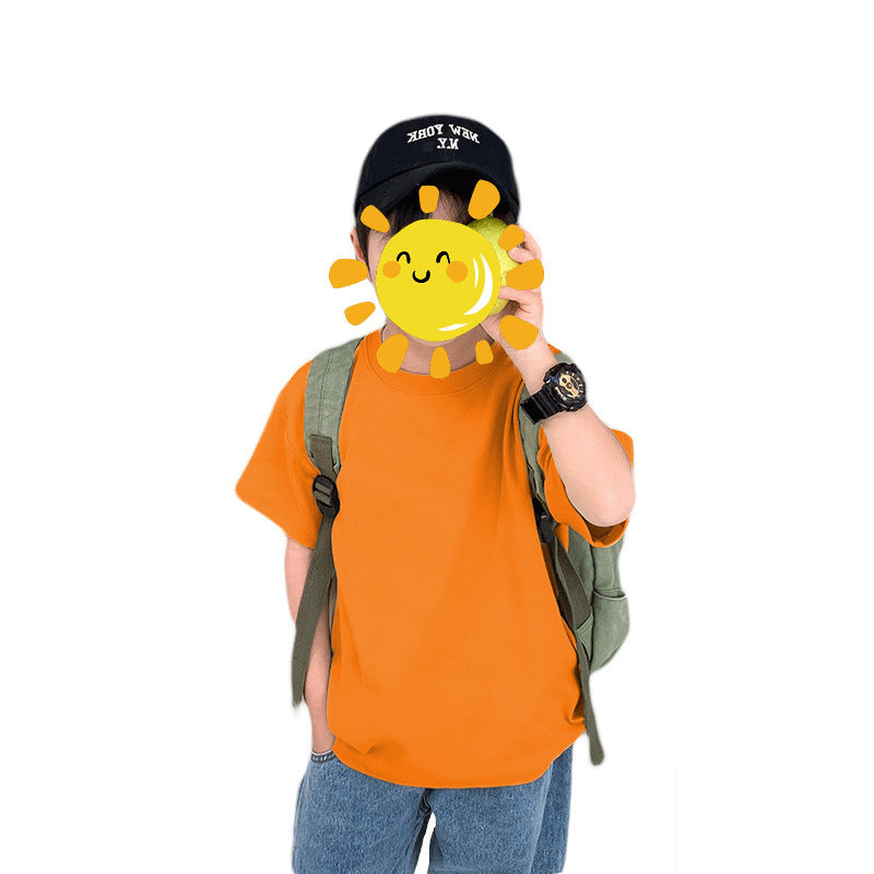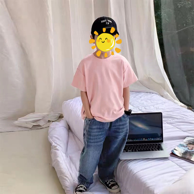 Z25030409含棉純色童裝男女短袖t恤衫夏季幼稚園班服兒童寶寶半袖上衣批發
