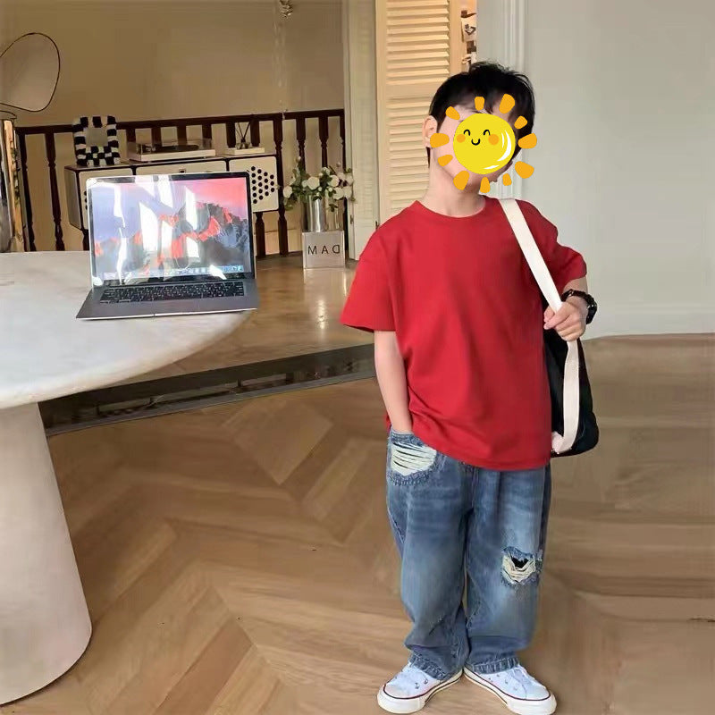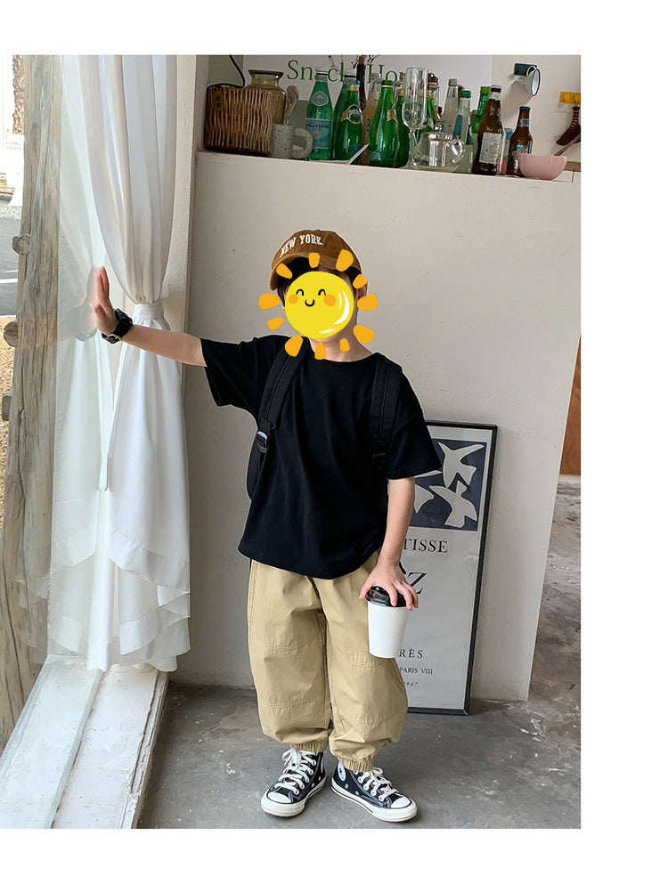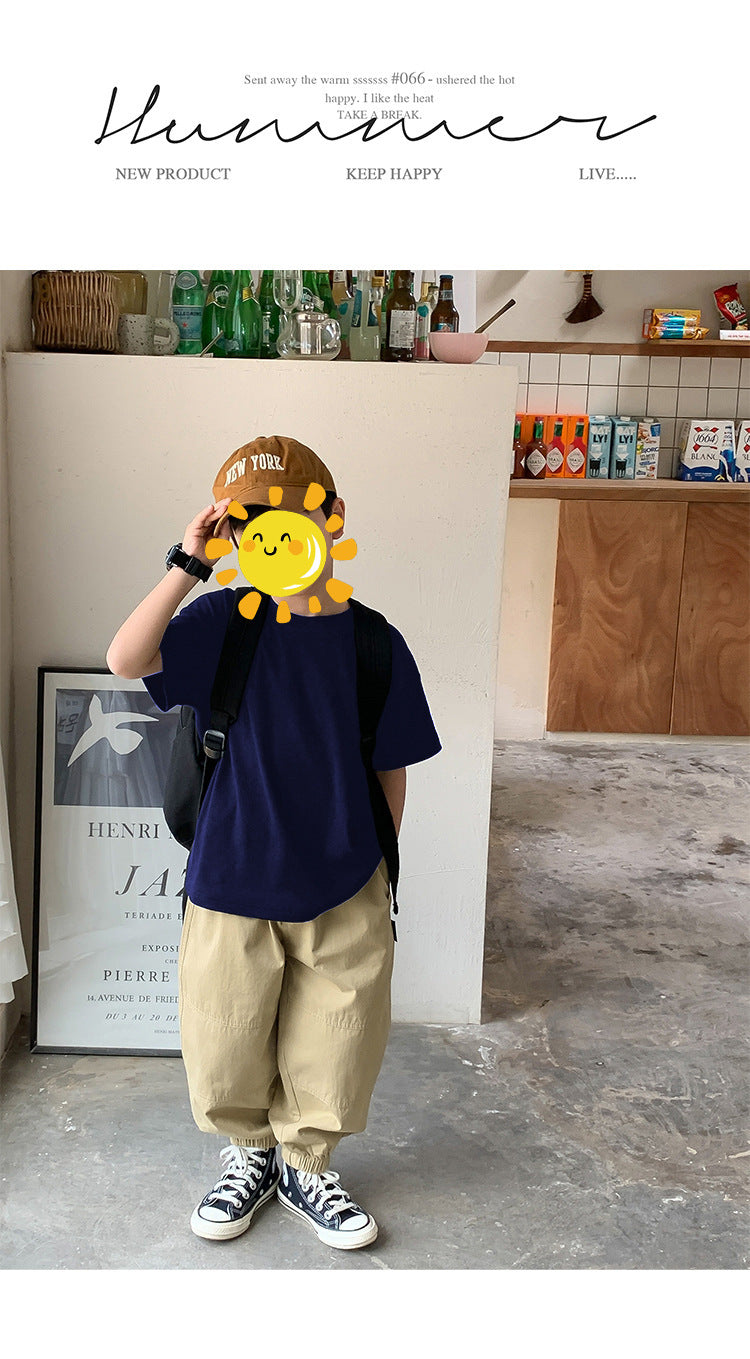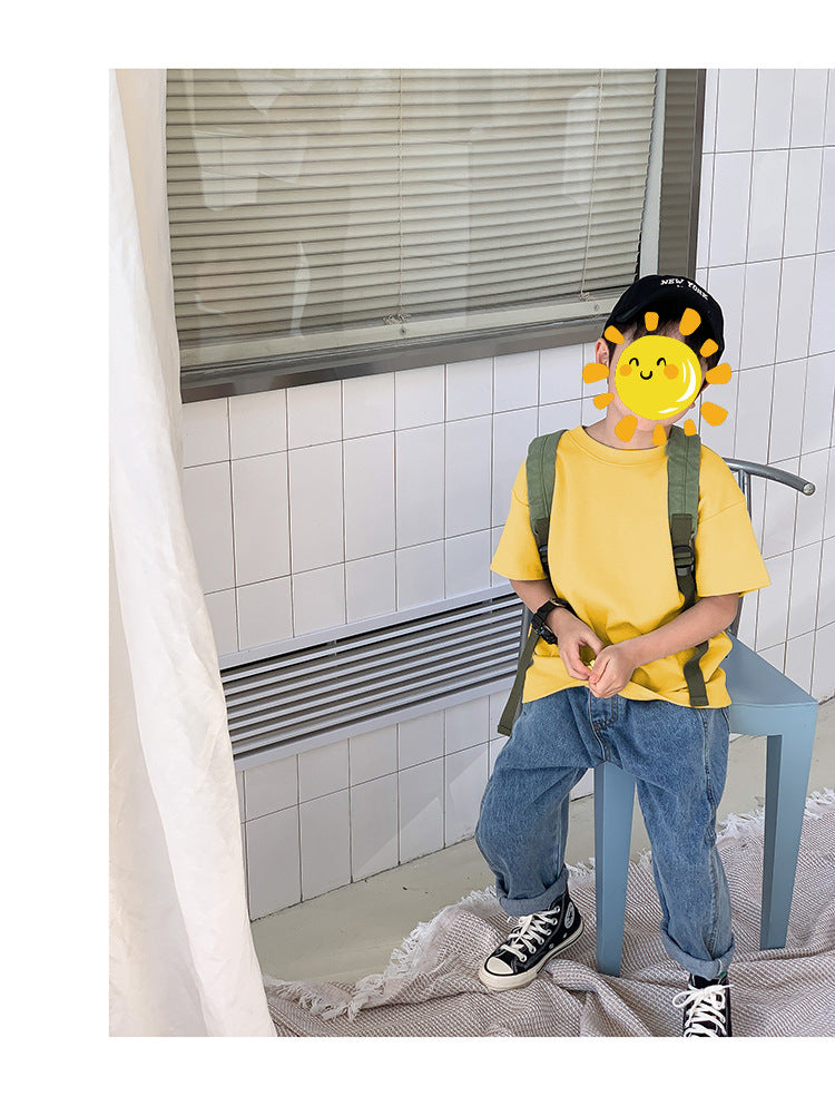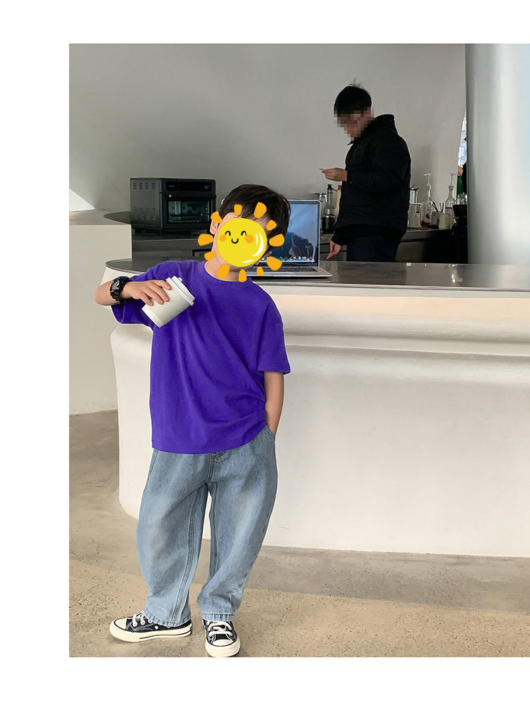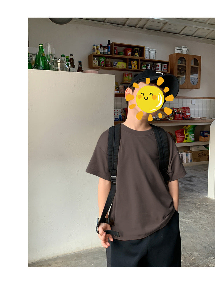 Z25030409含棉純色童裝男女短袖t恤衫夏季幼稚園班服兒童寶寶半袖上衣批發