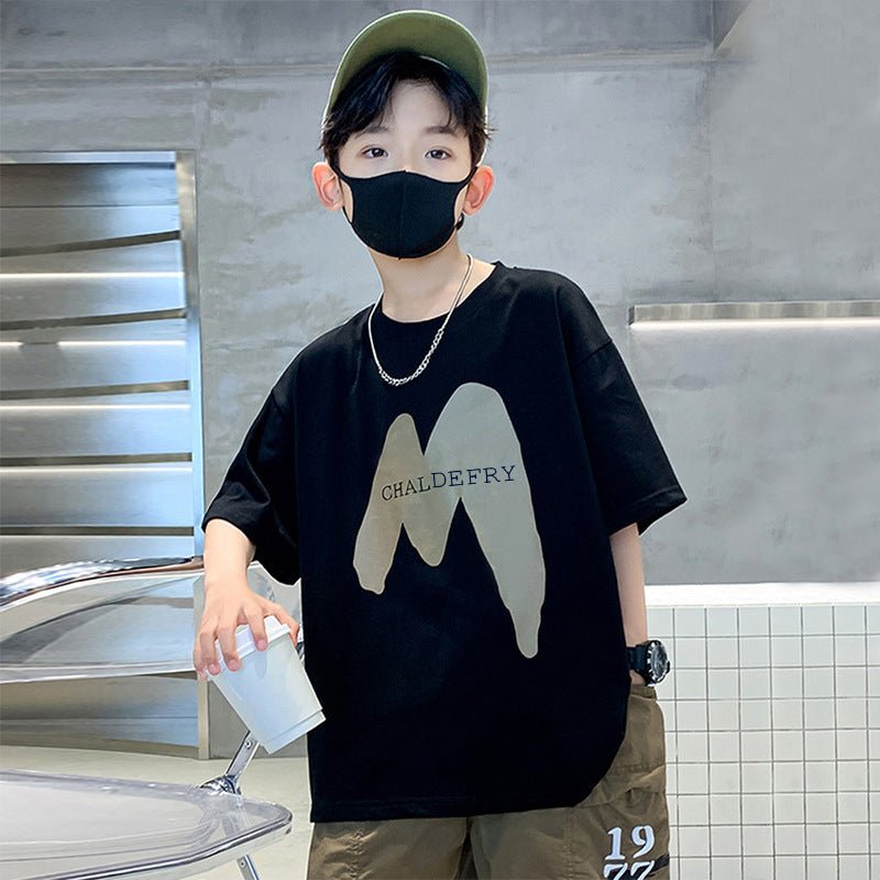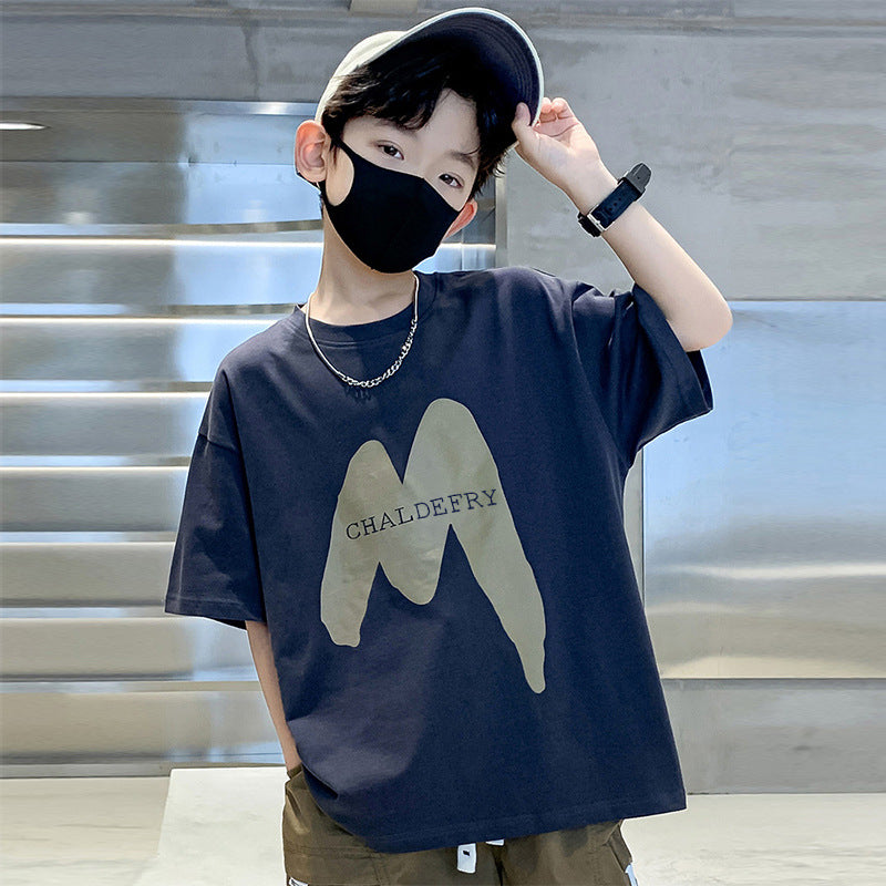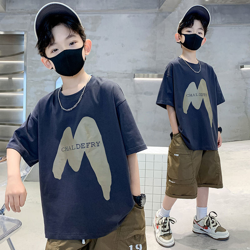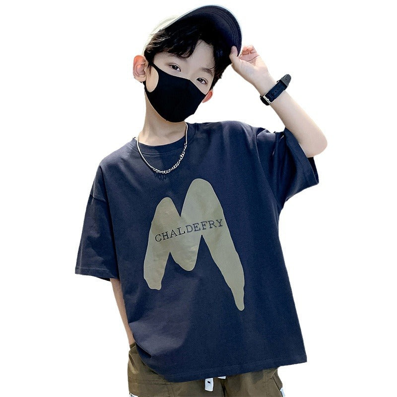 Z25030414男童短袖純棉t恤童趣酷帥新款兒童t卹字母寬鬆圓領上衣夏季童裝