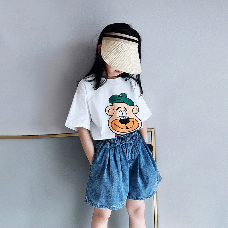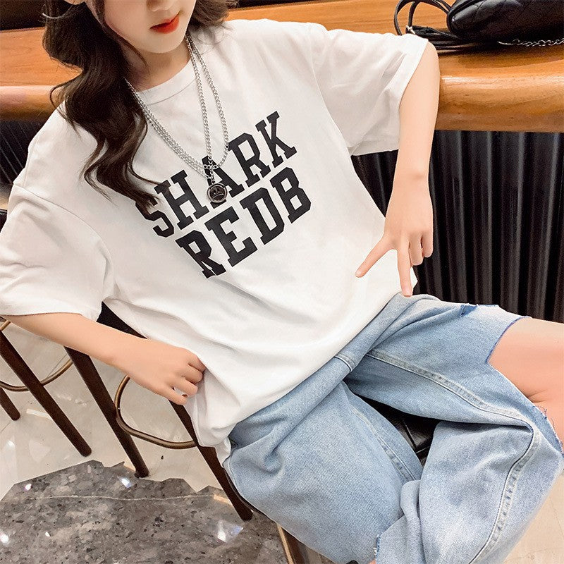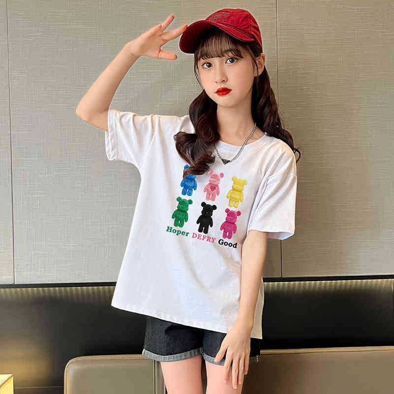 Z25030425多款選配 棉質休閒兒童t恤夏季女童白色短袖打底衫中大童上衣童裝