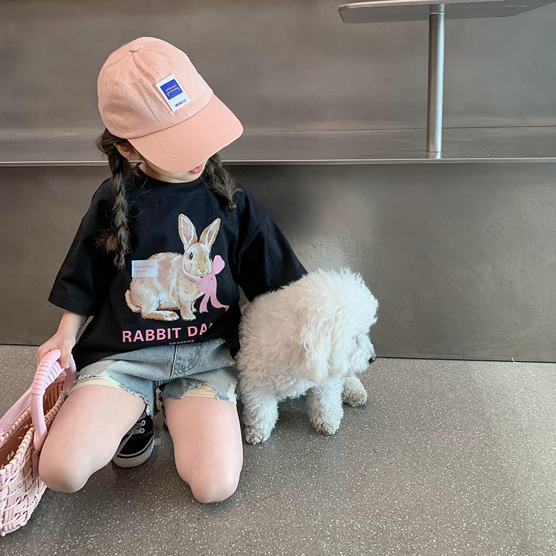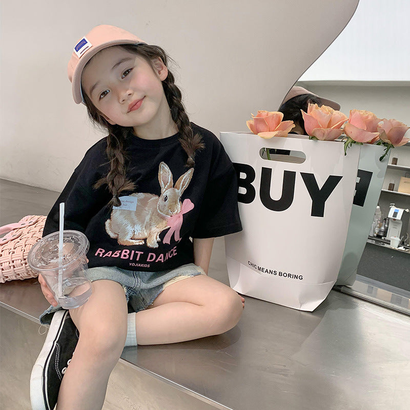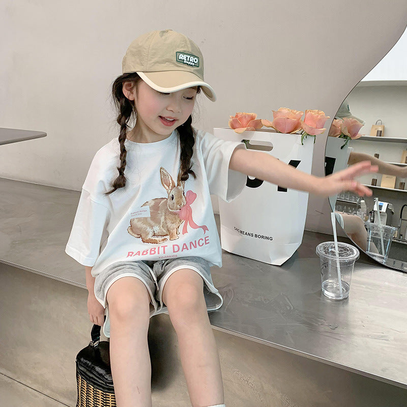 Z25030427女童夏裝短袖t恤純棉新款圓領樣衣寶寶半袖T恤寬鬆兒童上衣INS潮