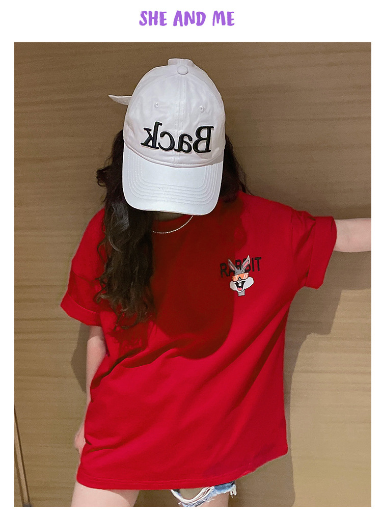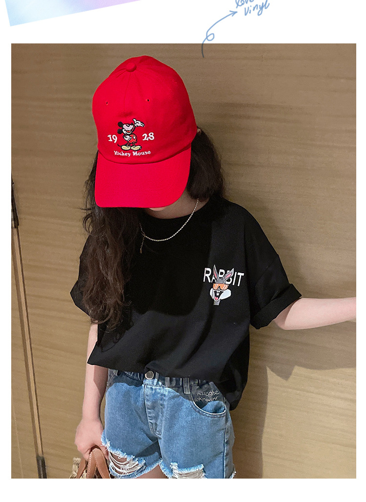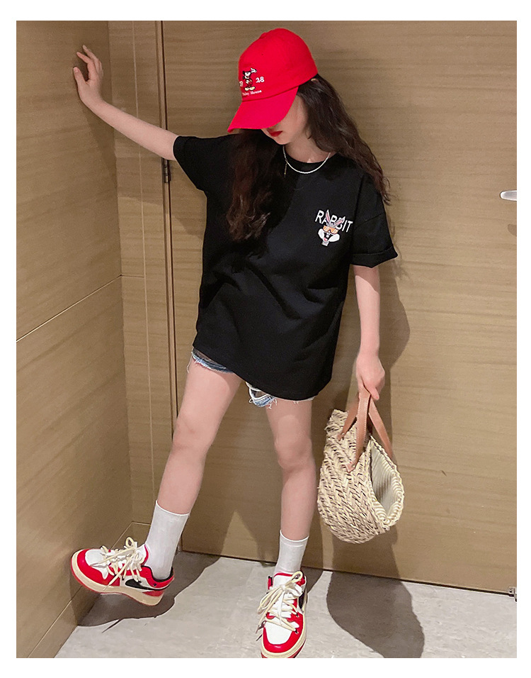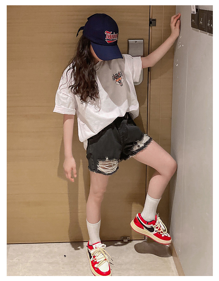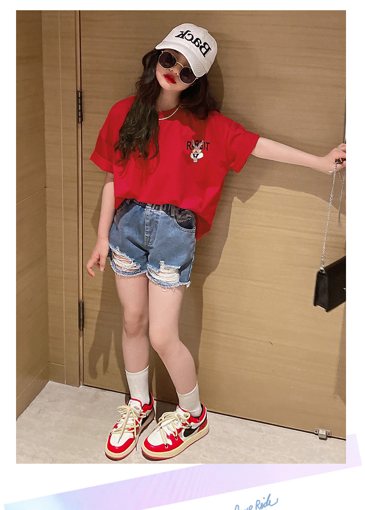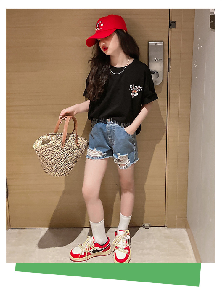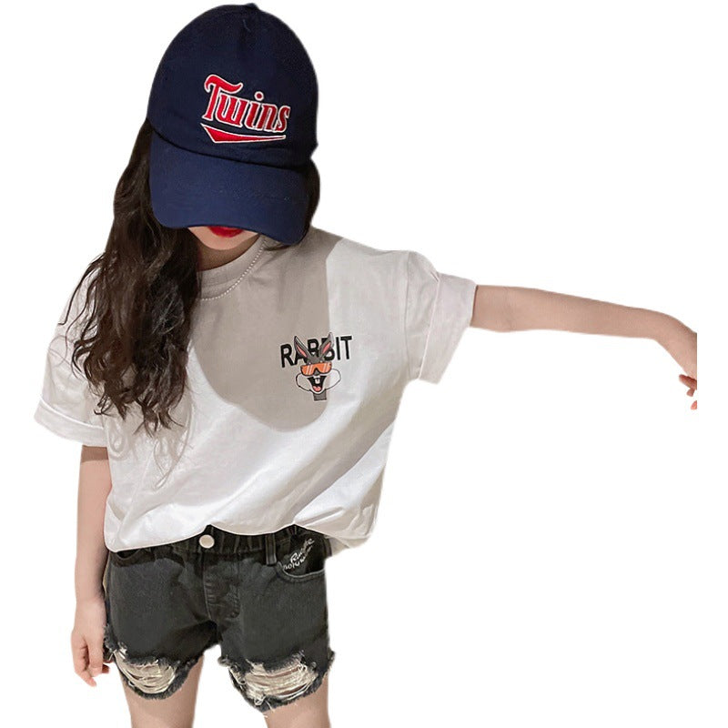 Z25030428女童短袖純棉洋氣兒童t恤女童夏季寬鬆前後印花半袖上衣童裝潮
