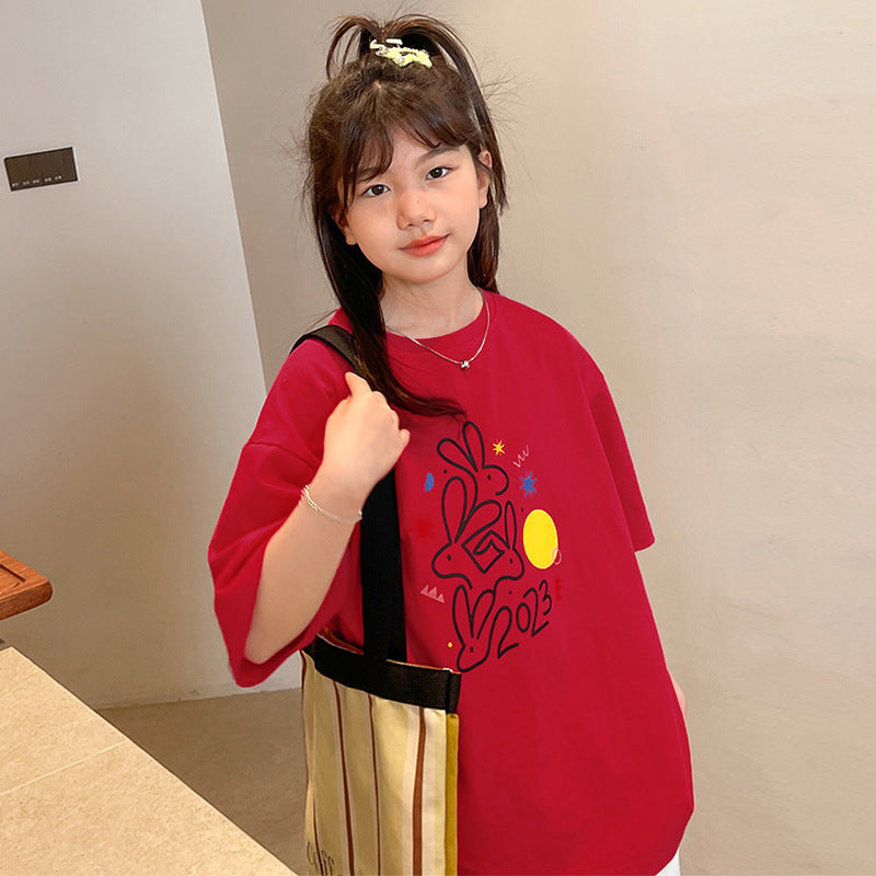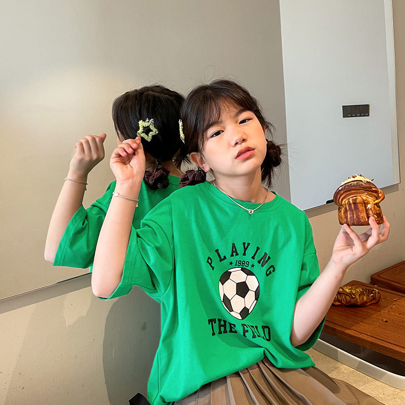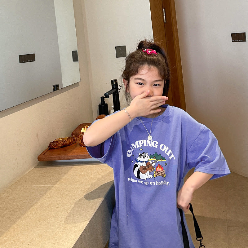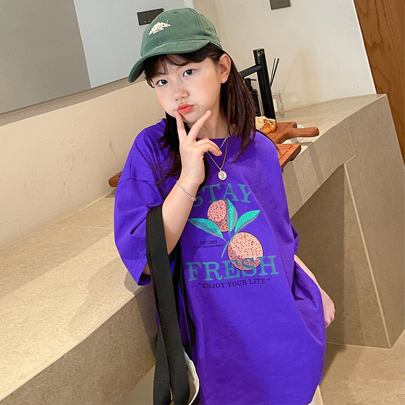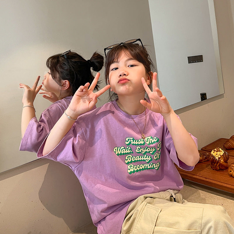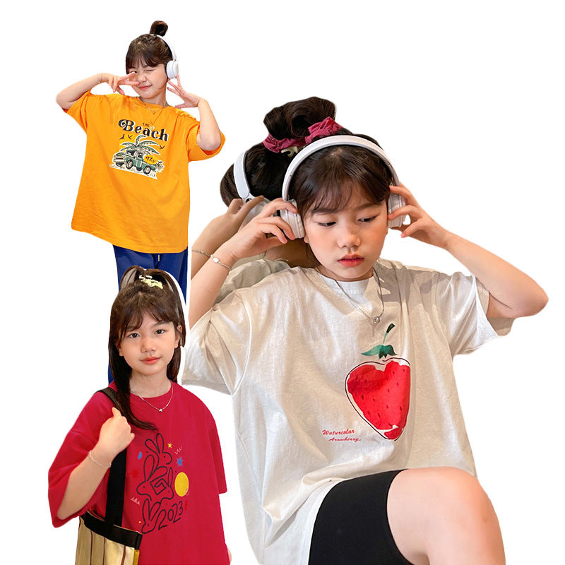 Z25030432女童短袖T恤夏裝新款中大童純棉寬鬆圓領兒童休閒夏季童裝上衣潮