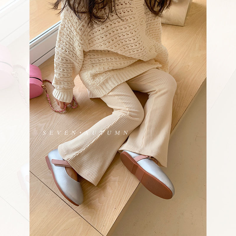 Z25030902兒童喇叭褲夏季新款兒童微喇叭褲女童冰絲坑條彈性洋氣外穿緊身褲