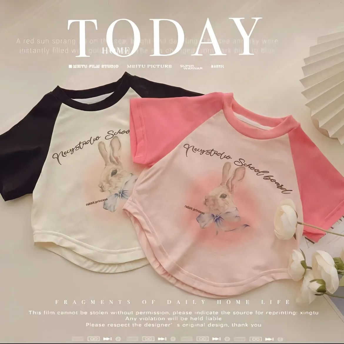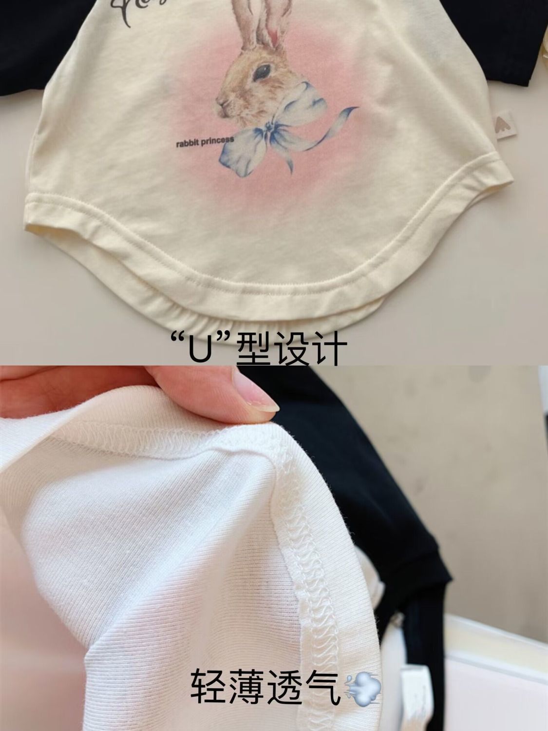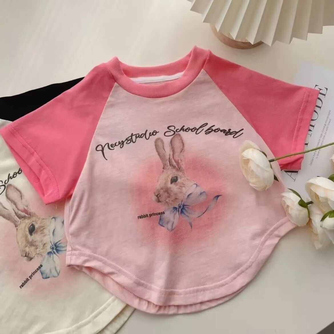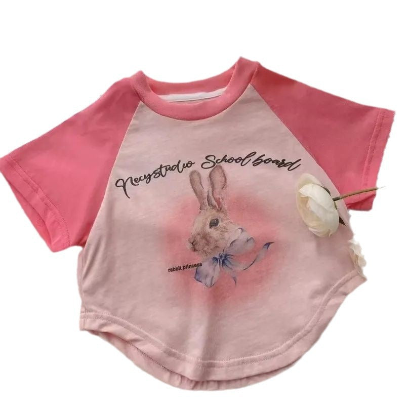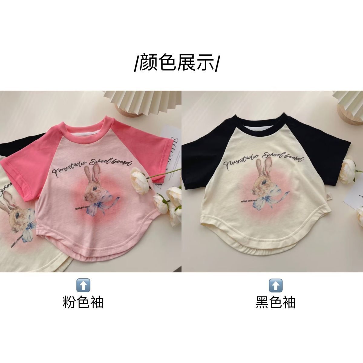 Z25030906女童T恤短袖夏裝韓版卡通兔外穿打底衫洋氣寶寶插肩百搭上衣