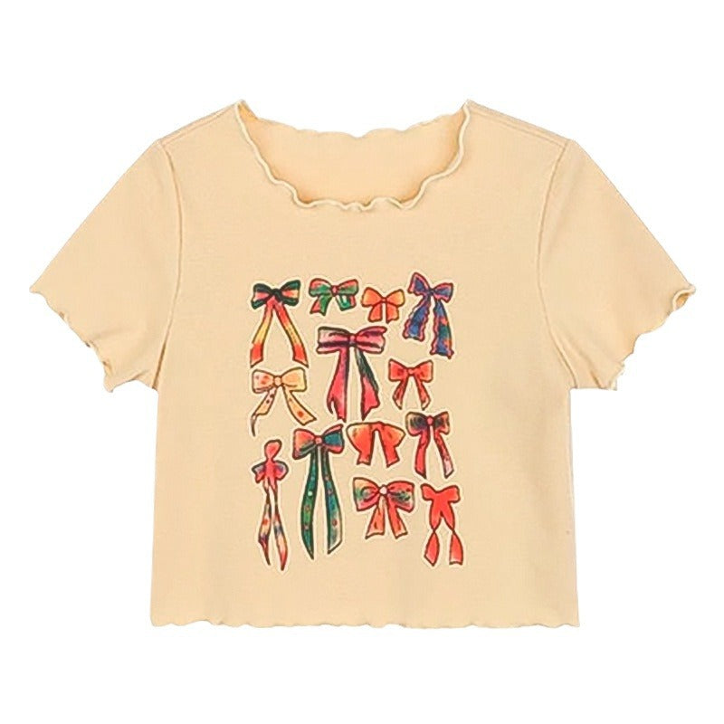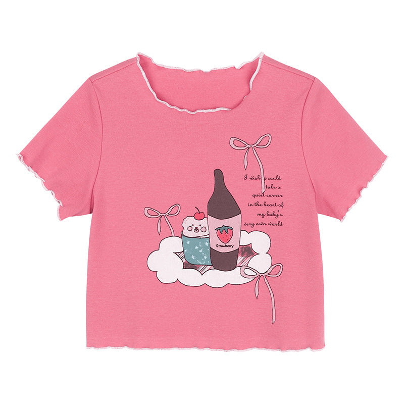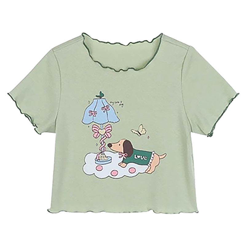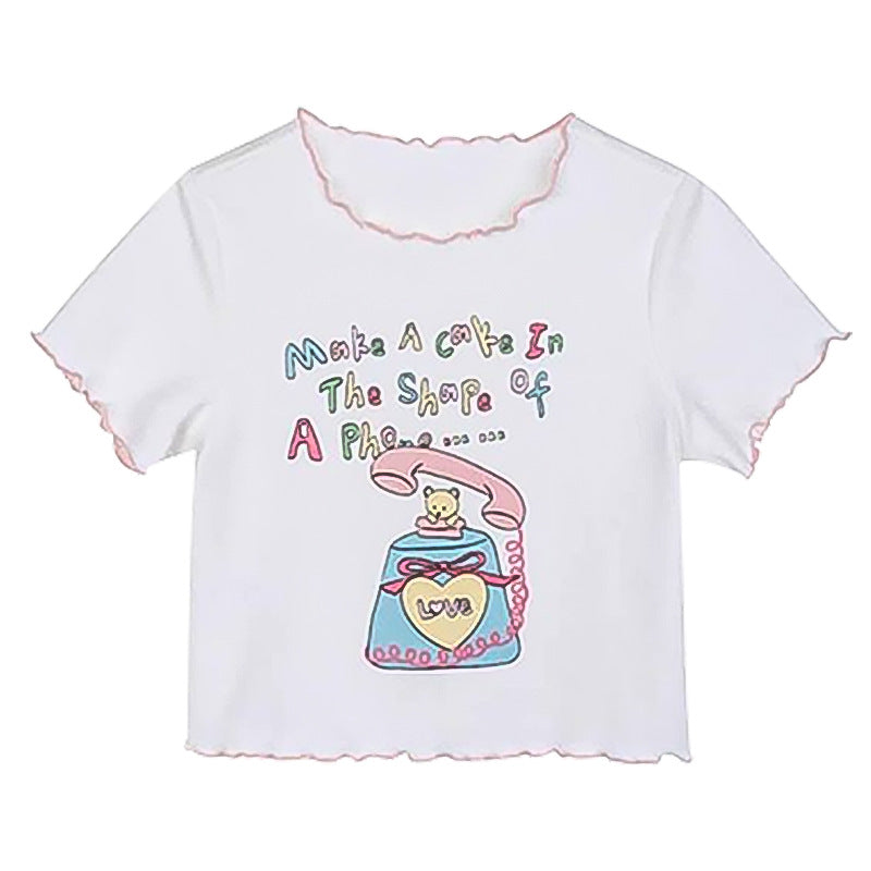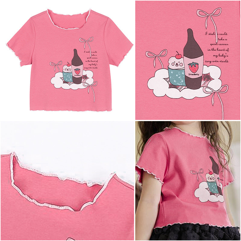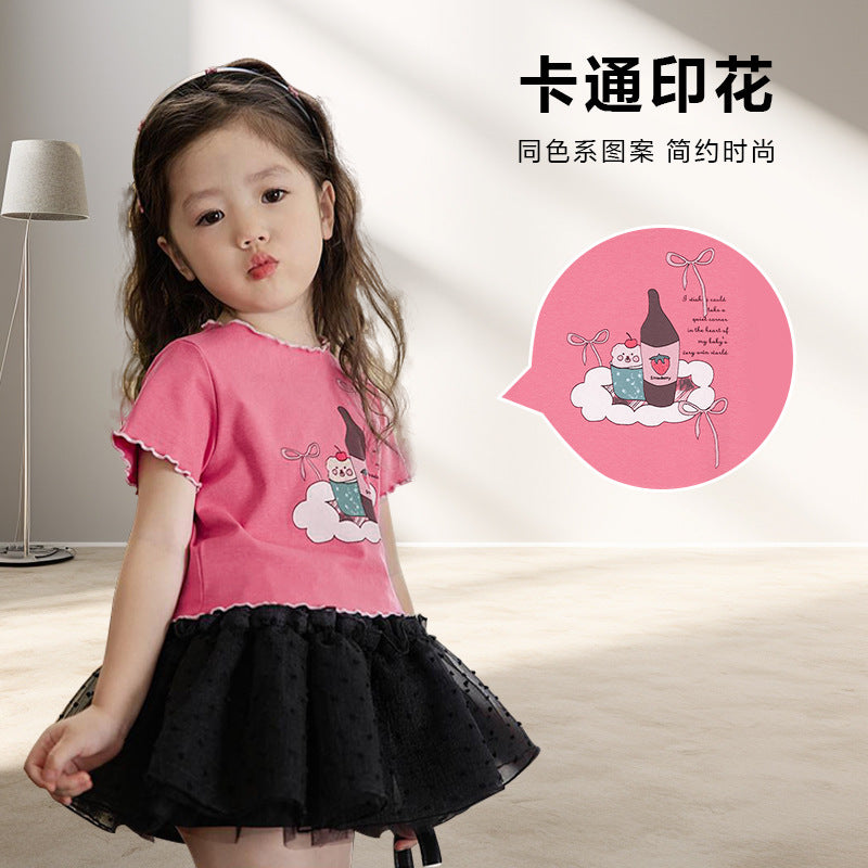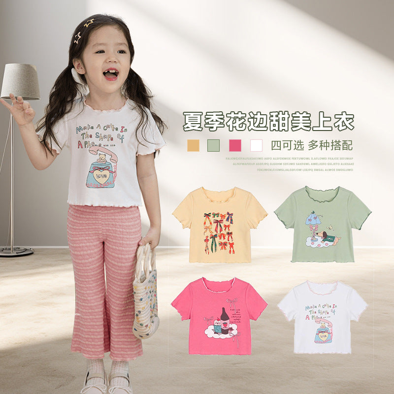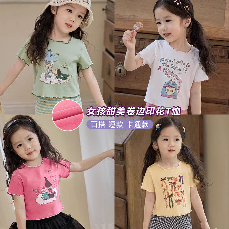 Z25030910女寶寶木耳邊T恤女童短袖上衣洋氣新款卡通印花半袖打底衫潮