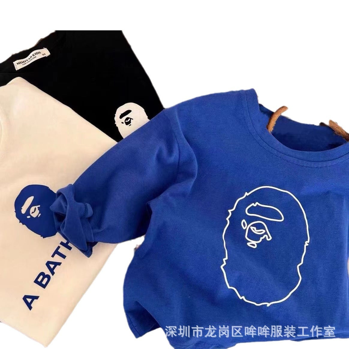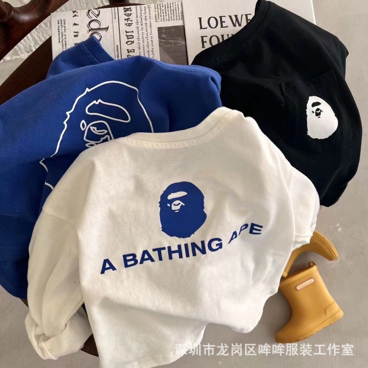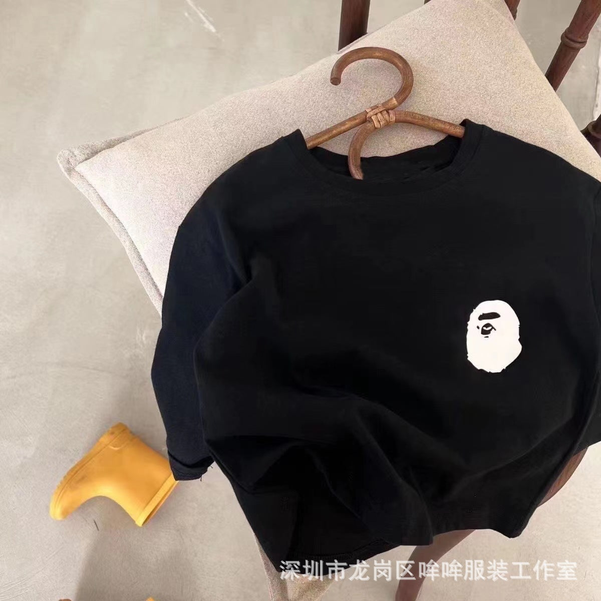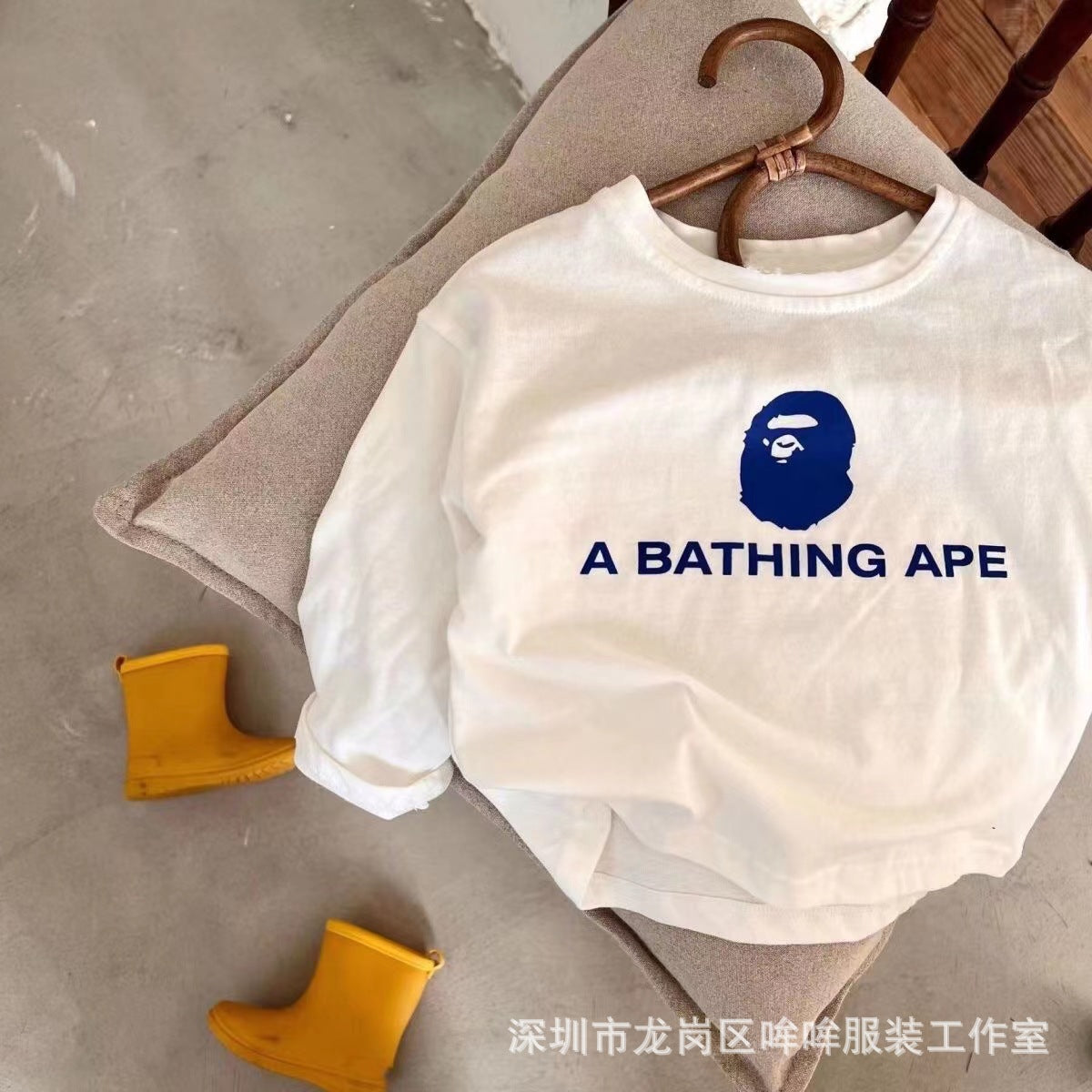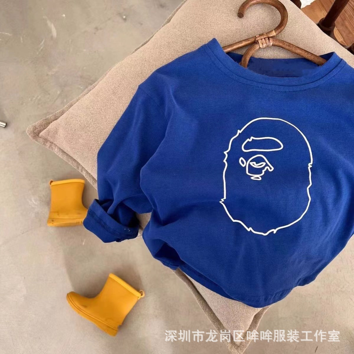 Z25030918兒童純棉長袖打底衫春季秋季中小童簡約上衣T恤男童女童潮流衣服