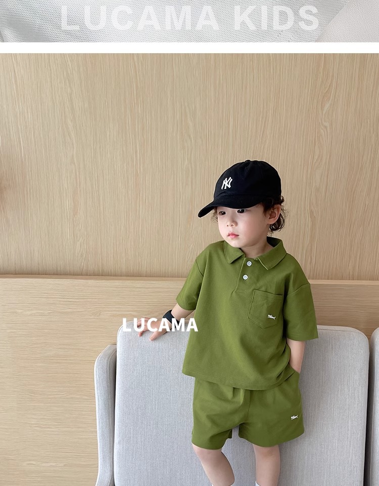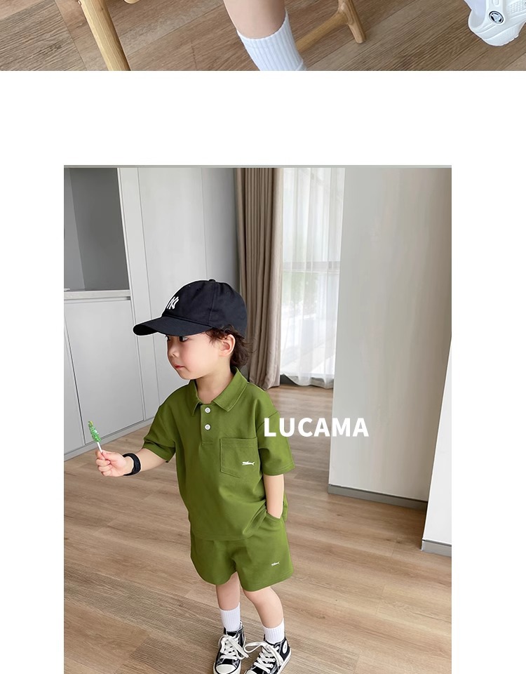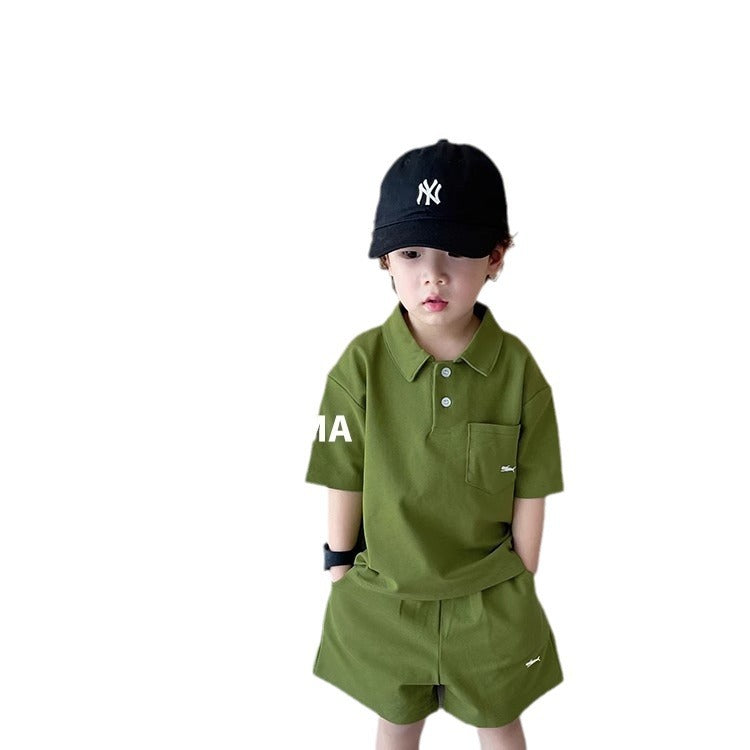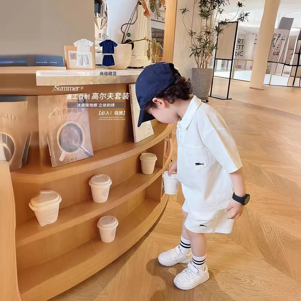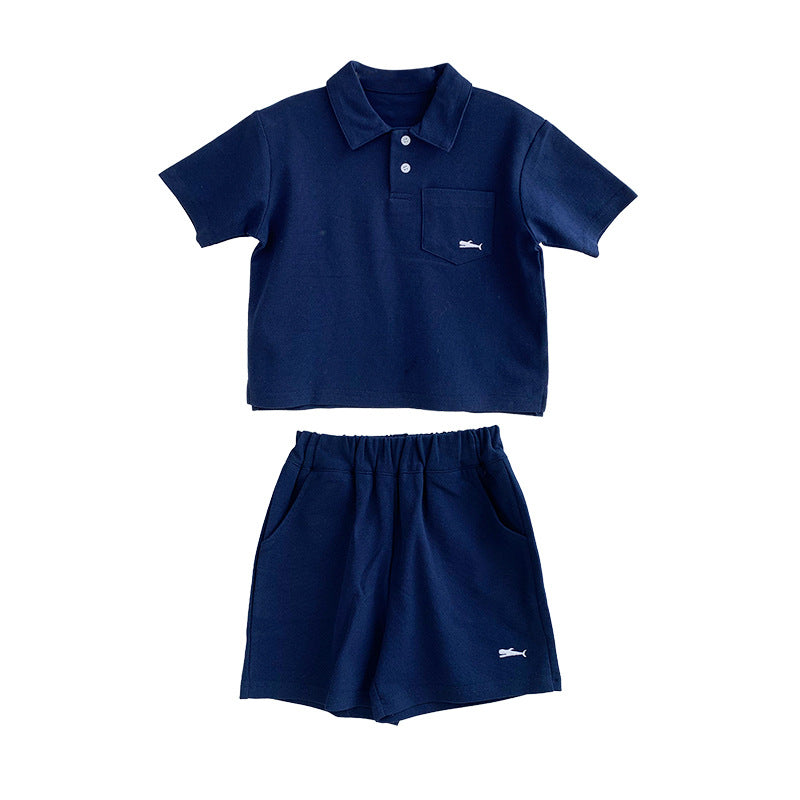 Z25033102兒童POLO領套裝洋氣男童中大童休閒兩件套夏季寬鬆百搭運動套裝