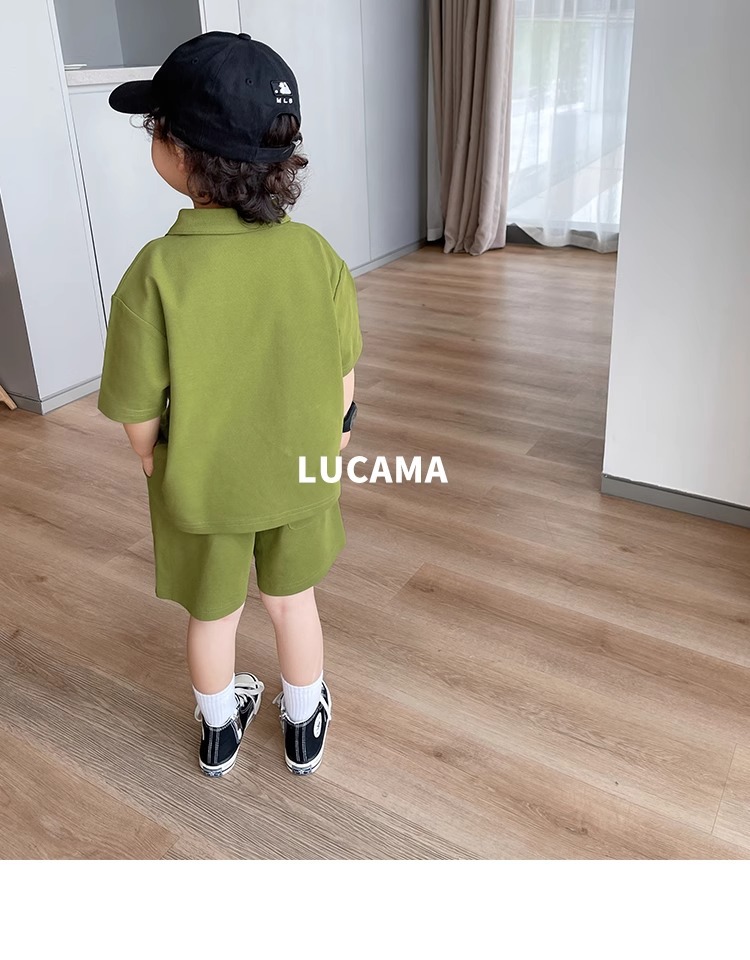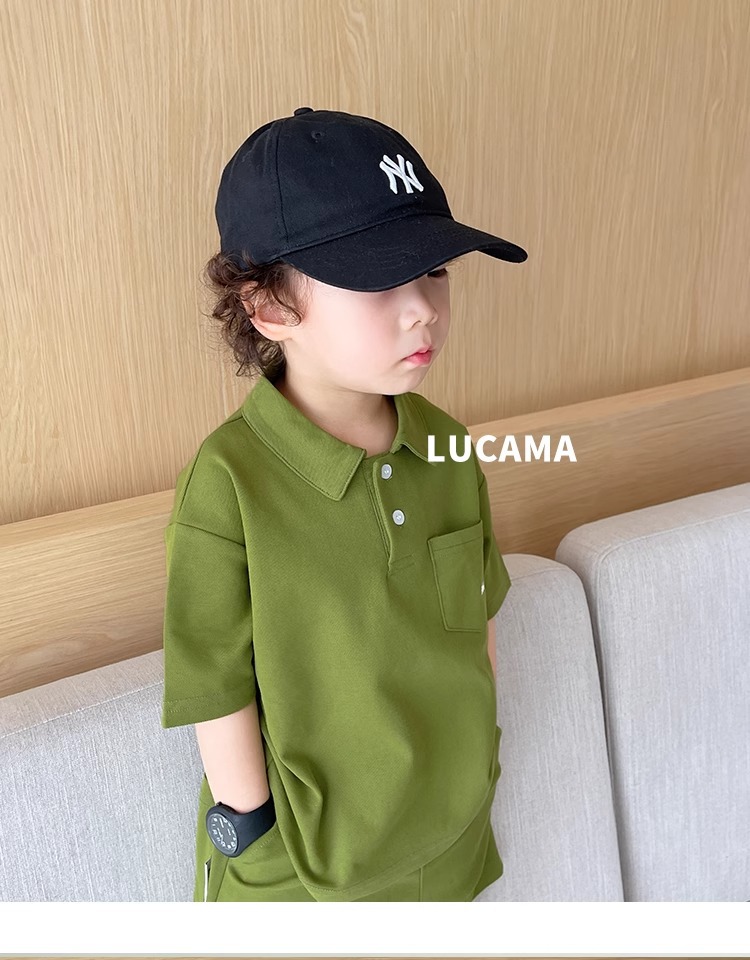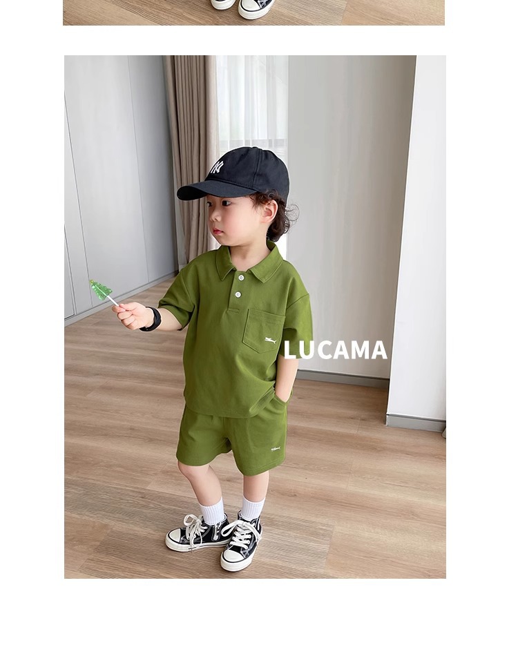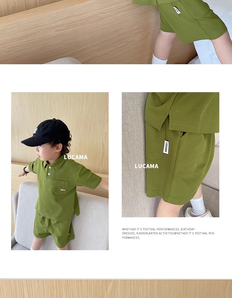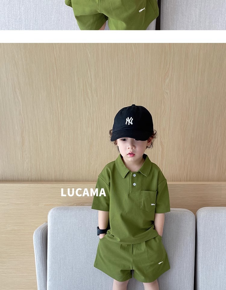 Z25033102兒童POLO領套裝洋氣男童中大童休閒兩件套夏季寬鬆百搭運動套裝