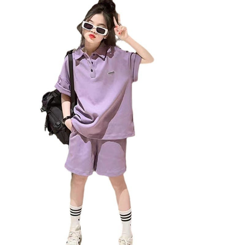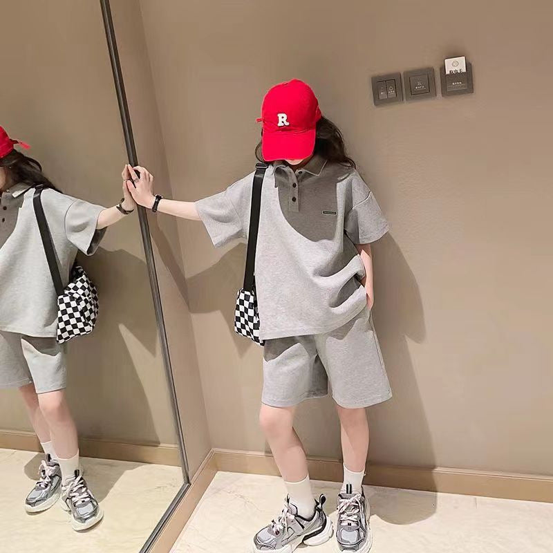 Z25033106女童夏裝套裝兒童洋氣時髦夏季短袖polo衫女大童運動夏款