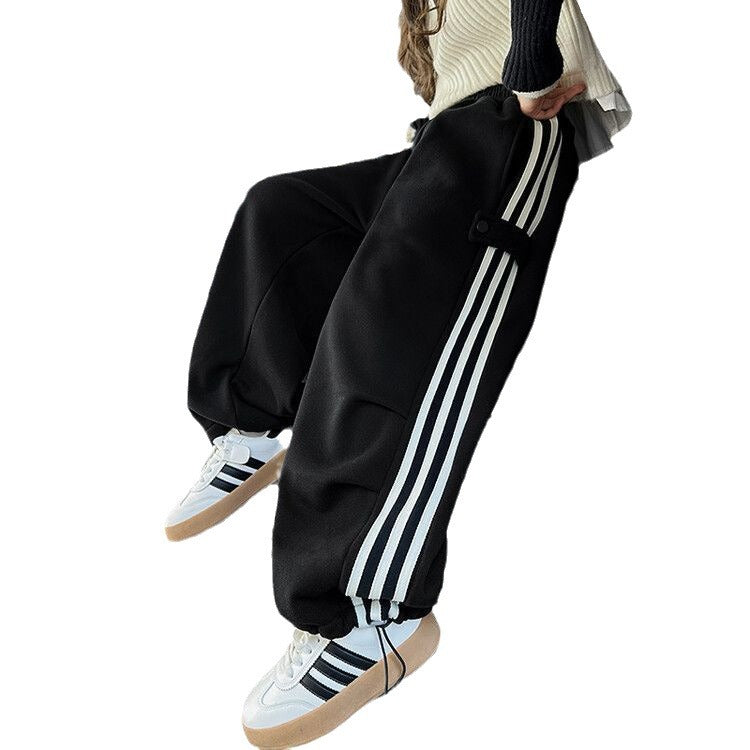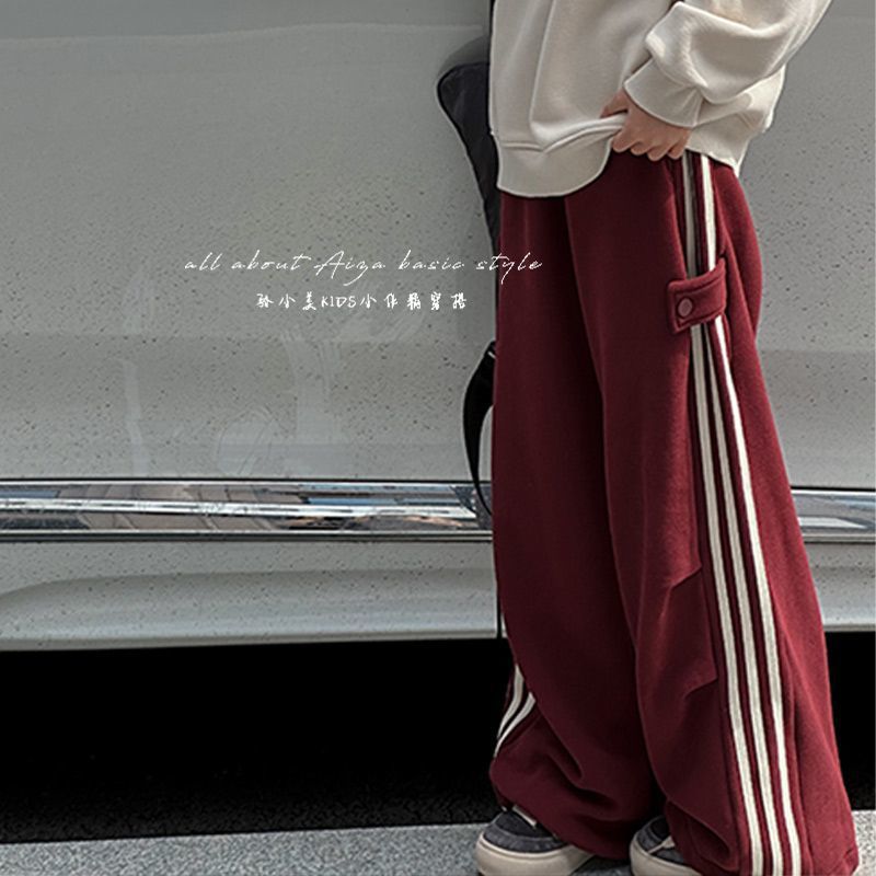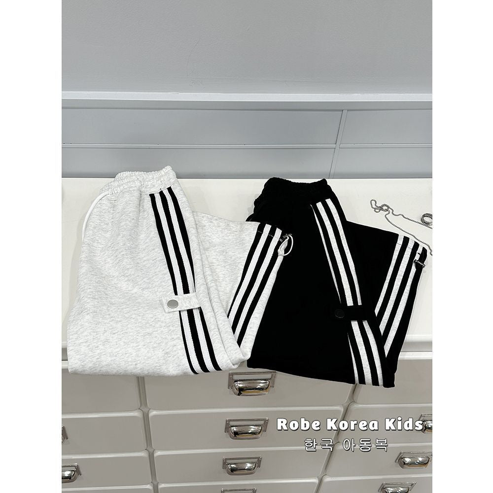 Z25033110早秋兒童運動褲春秋韓版炸街中大童條紋衛褲寬鬆男女童束腳褲