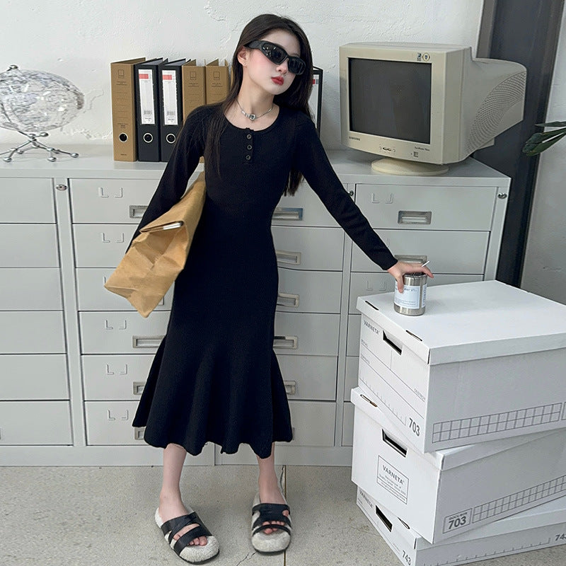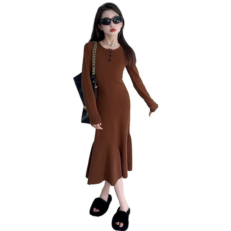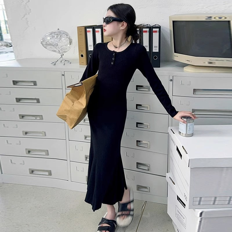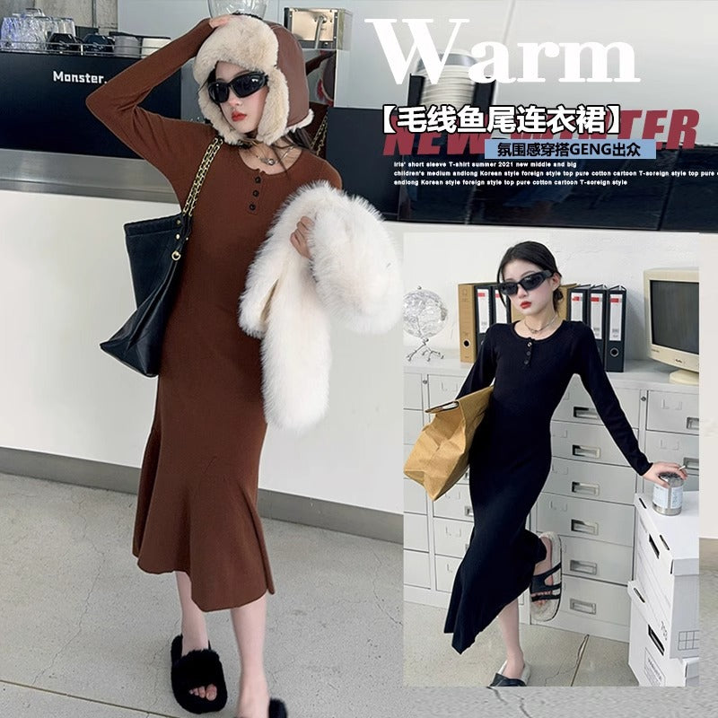 Z25033112女童裙春秋女大童秋裝時尚魚尾裙兒童裝潢身打底連身裙