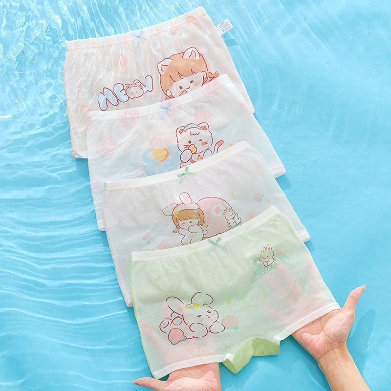 Z25040122女童內褲兒童a類冰絲網眼涼感適氣女生女孩寶寶夏日薄款平角褲