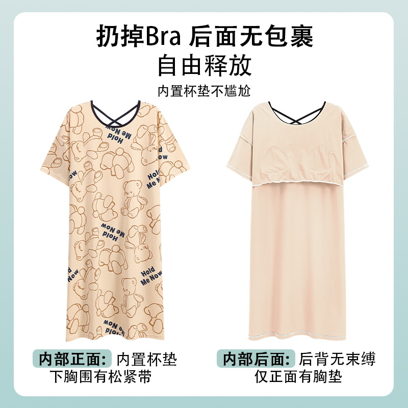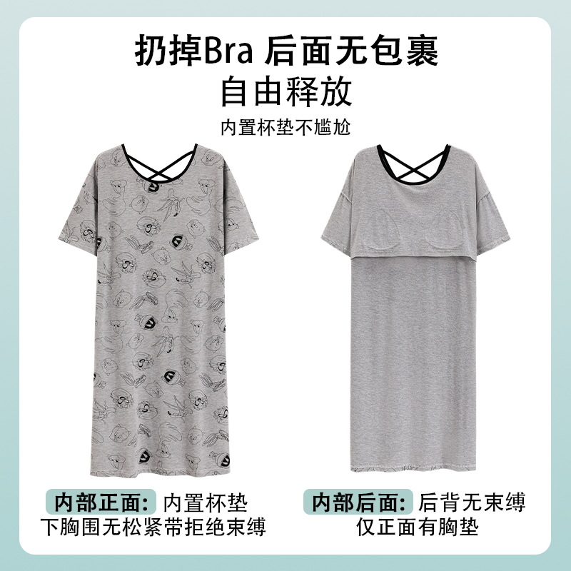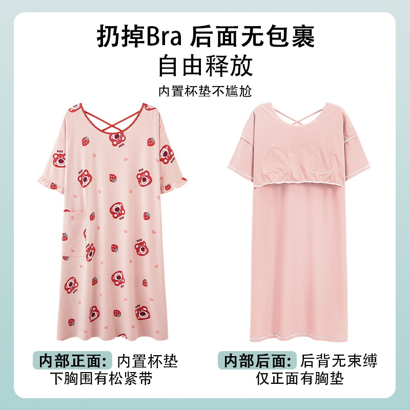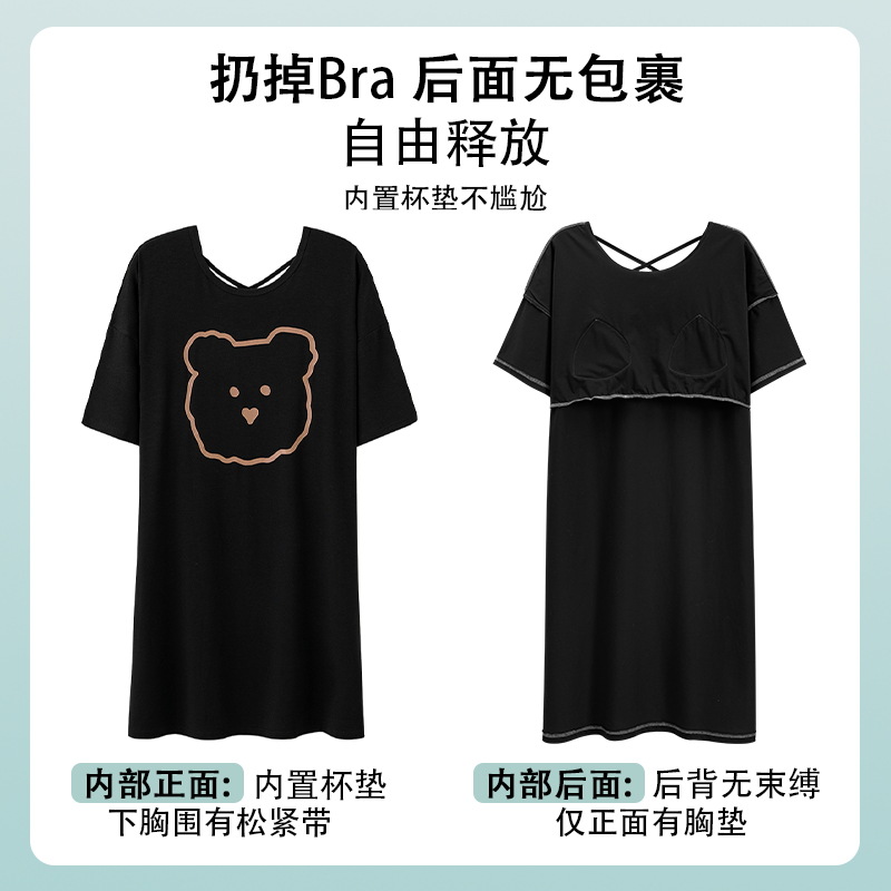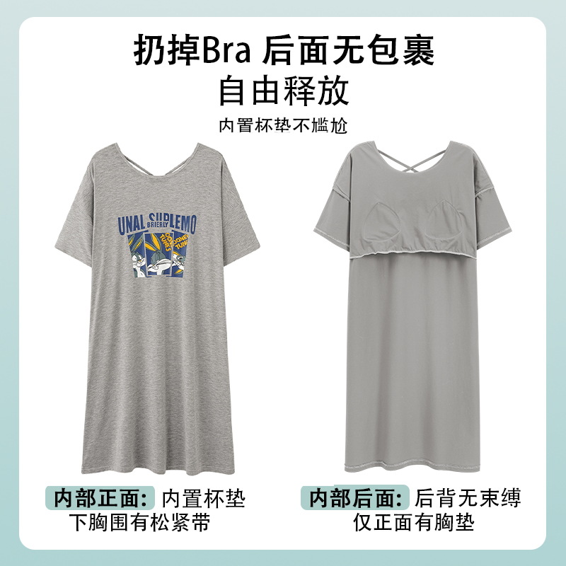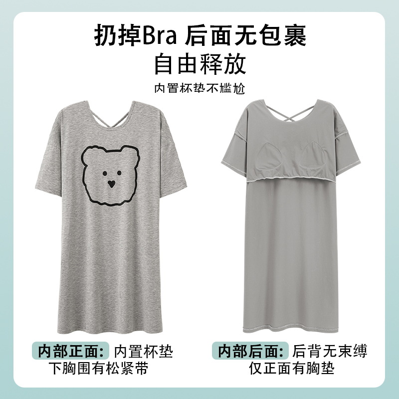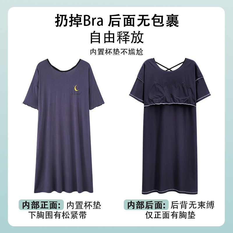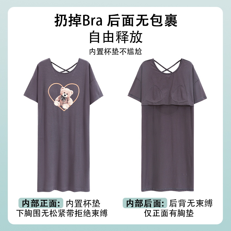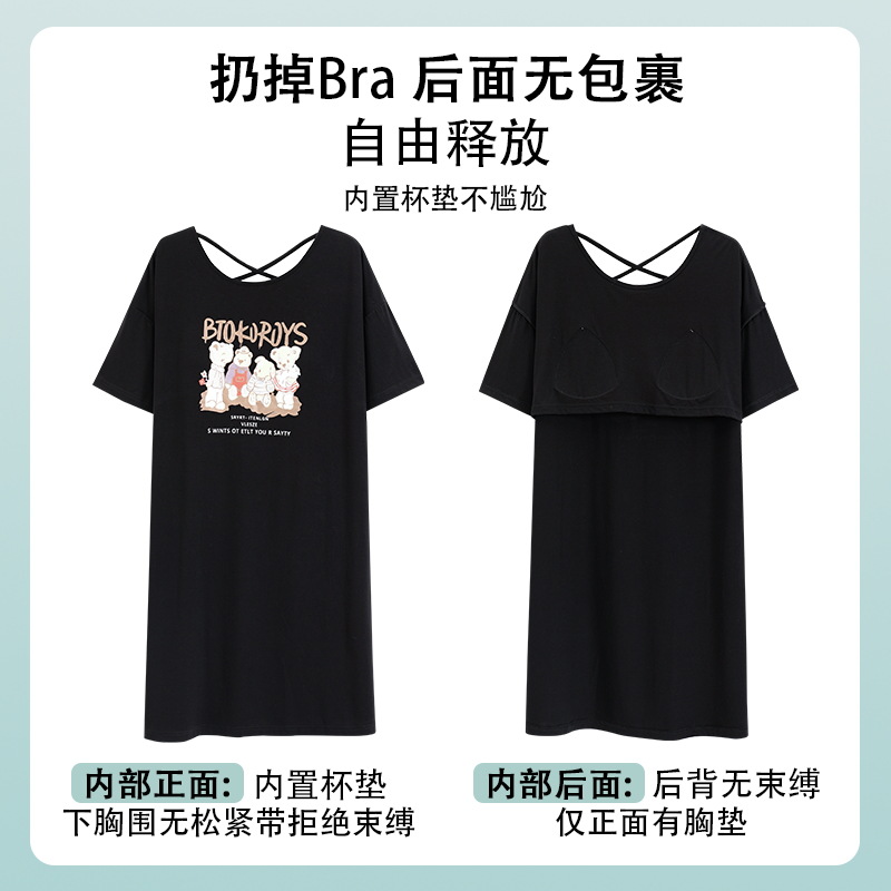 Z25040126自備胸墊一體式睡裙女款夏季短袖睡裙夏天莫代爾可外穿