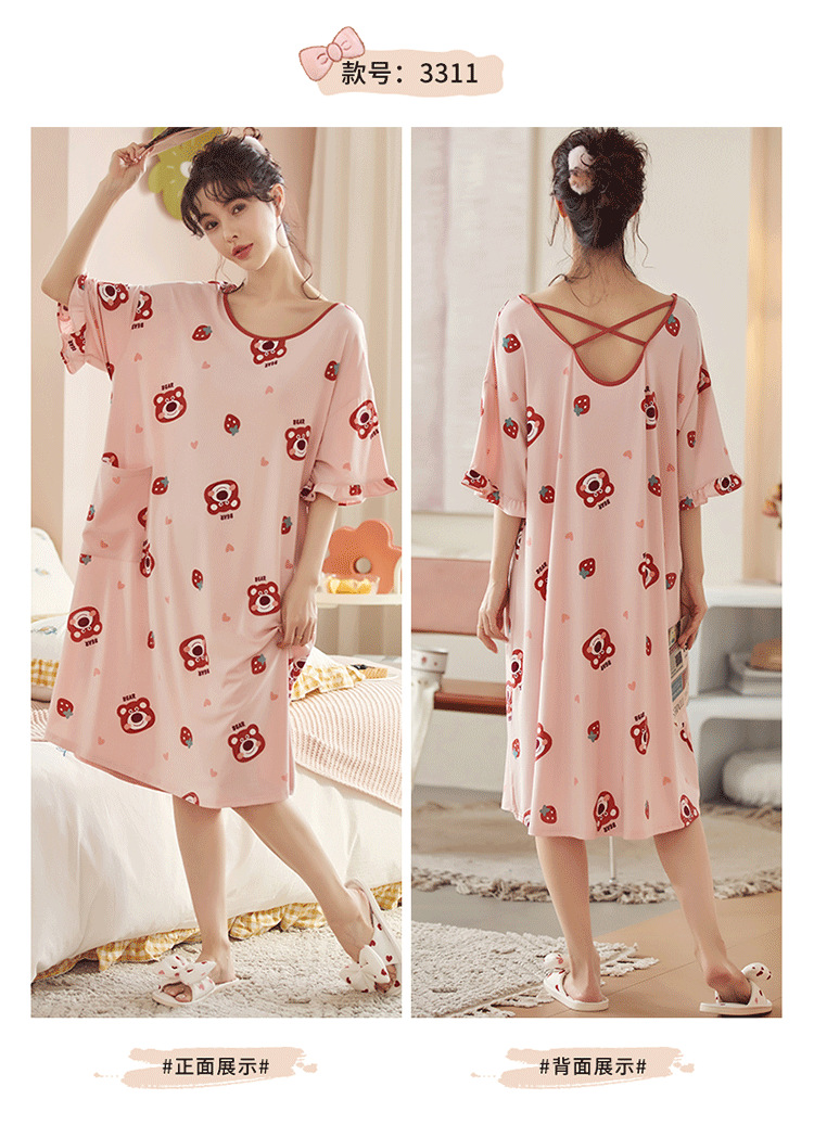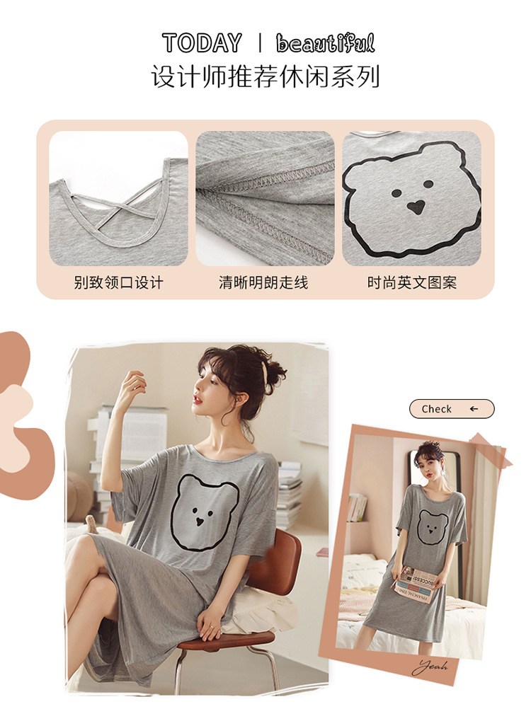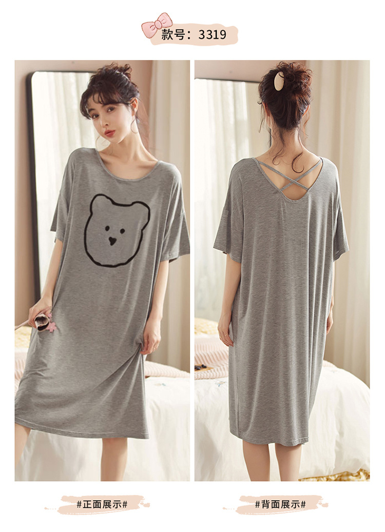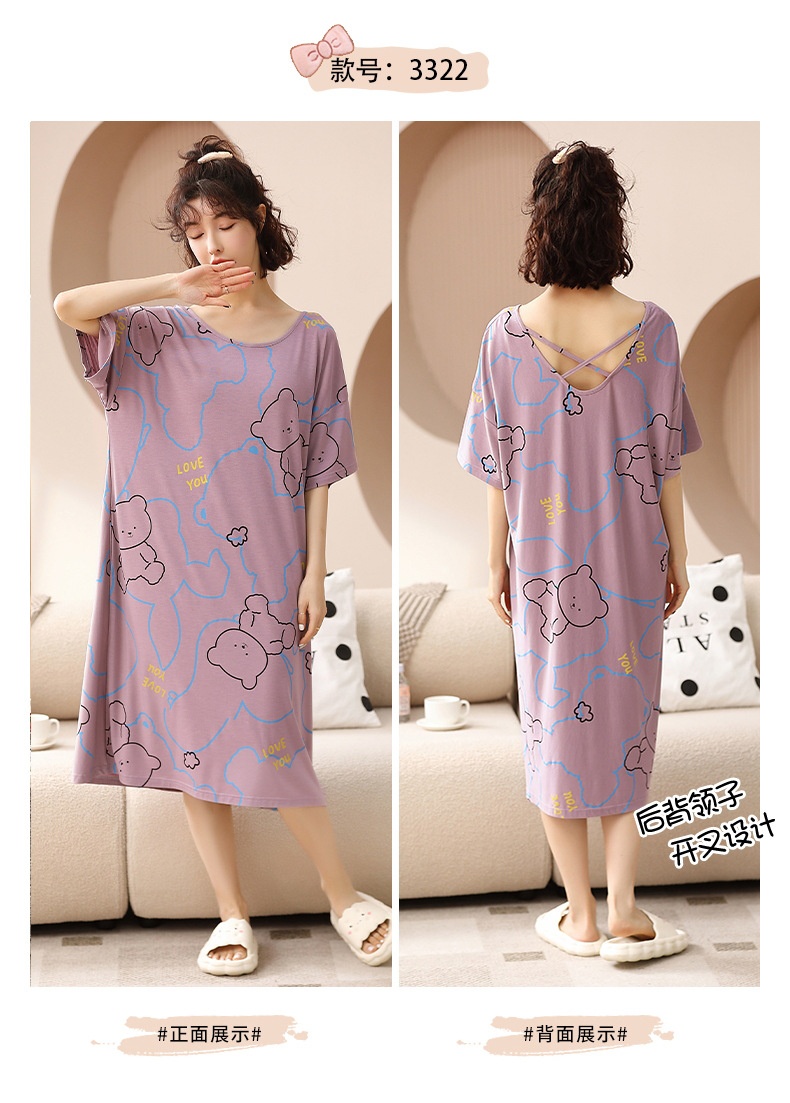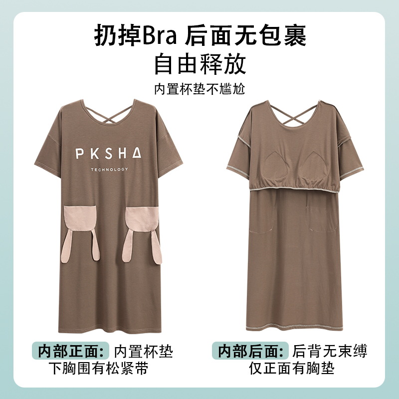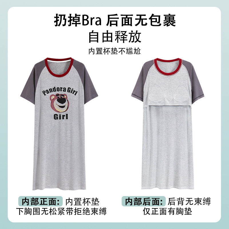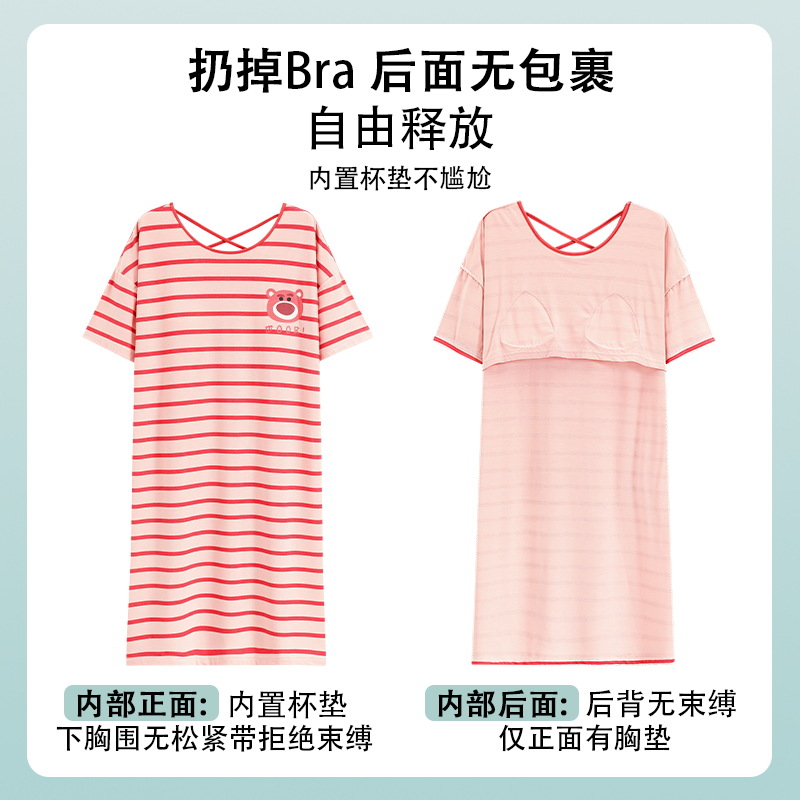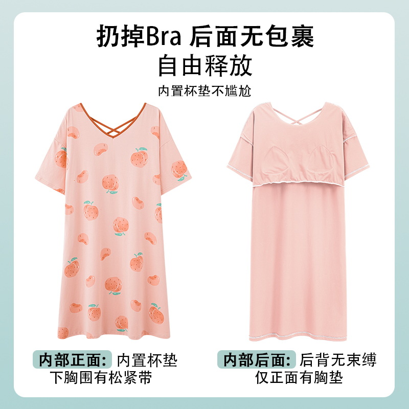 Z25040126自備胸墊一體式睡裙女款夏季短袖睡裙夏天莫代爾可外穿