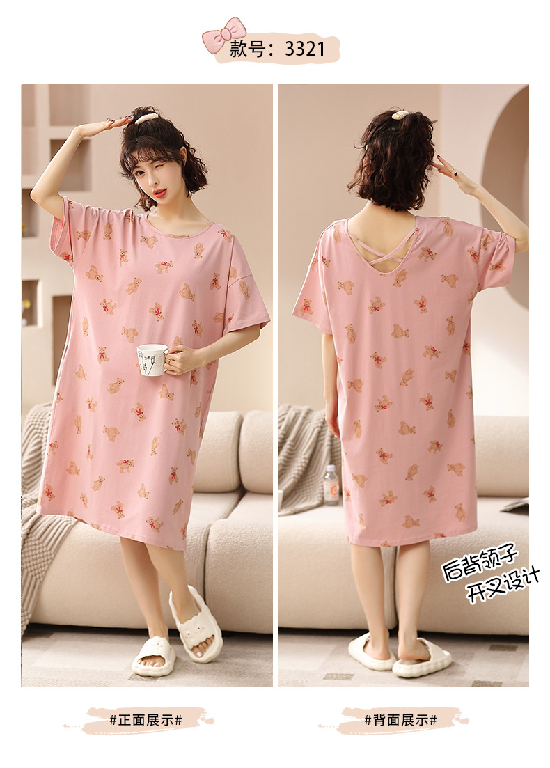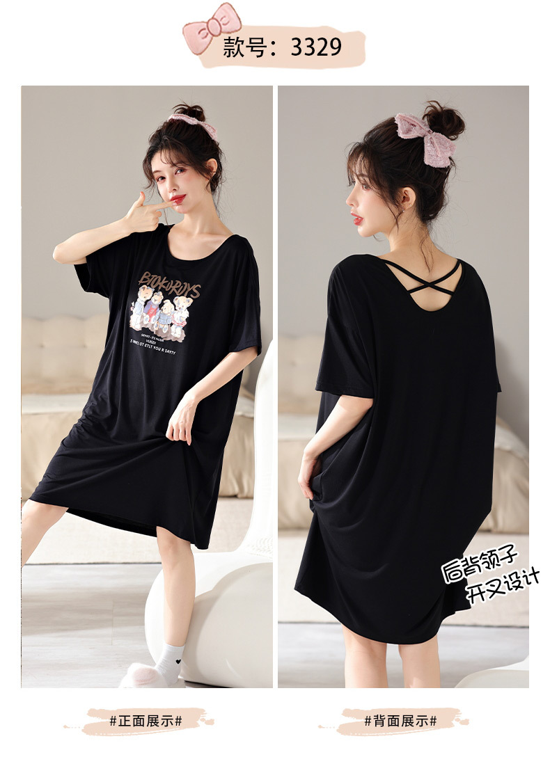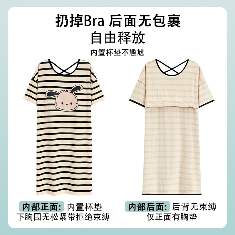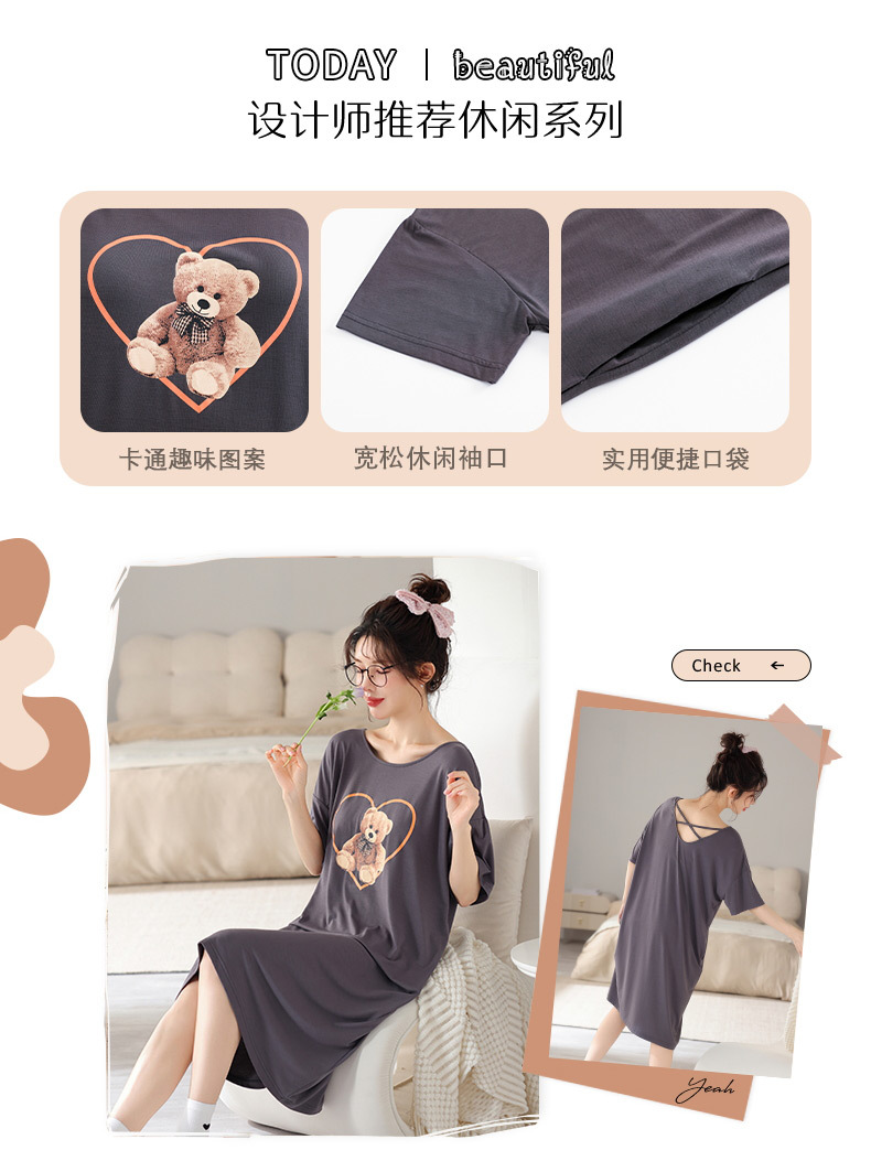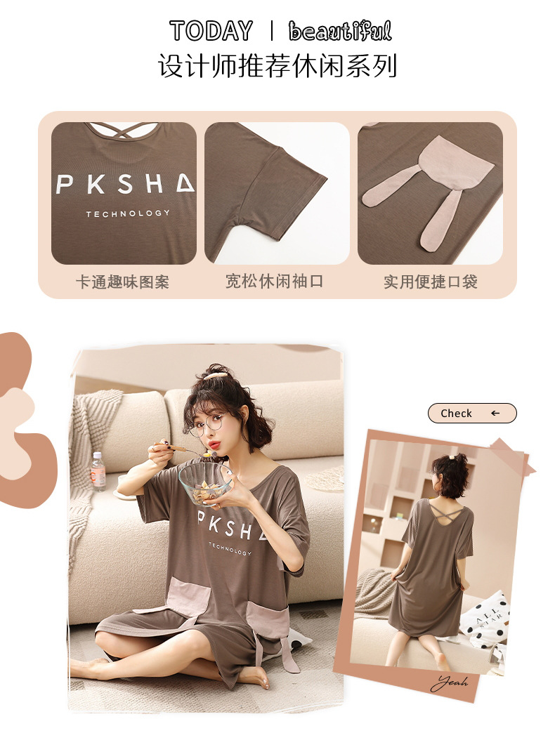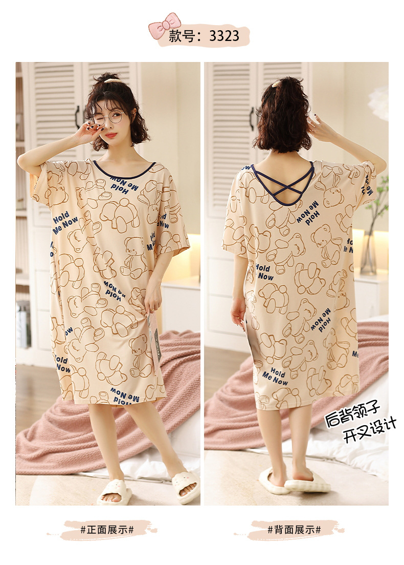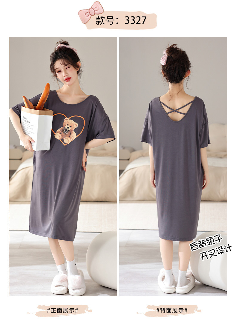 Z25040126自備胸墊一體式睡裙女款夏季短袖睡裙夏天莫代爾可外穿
