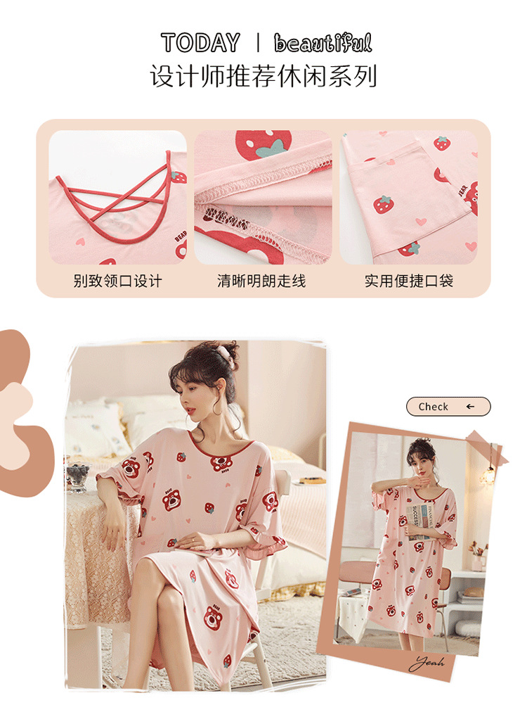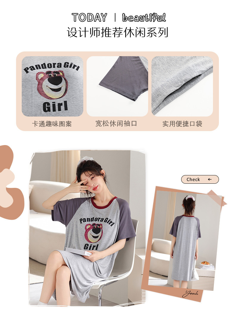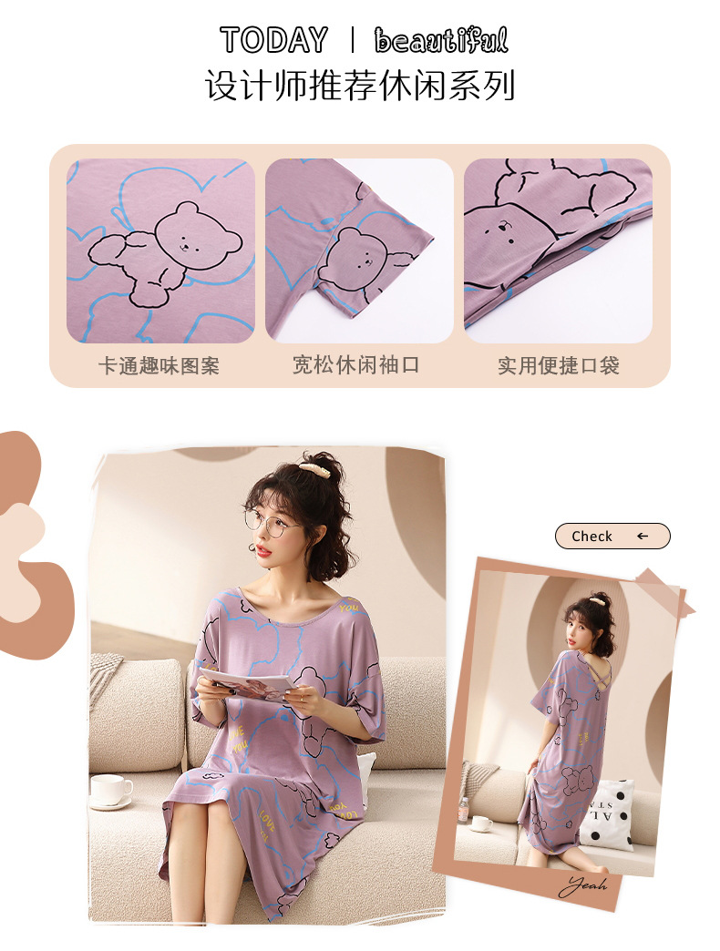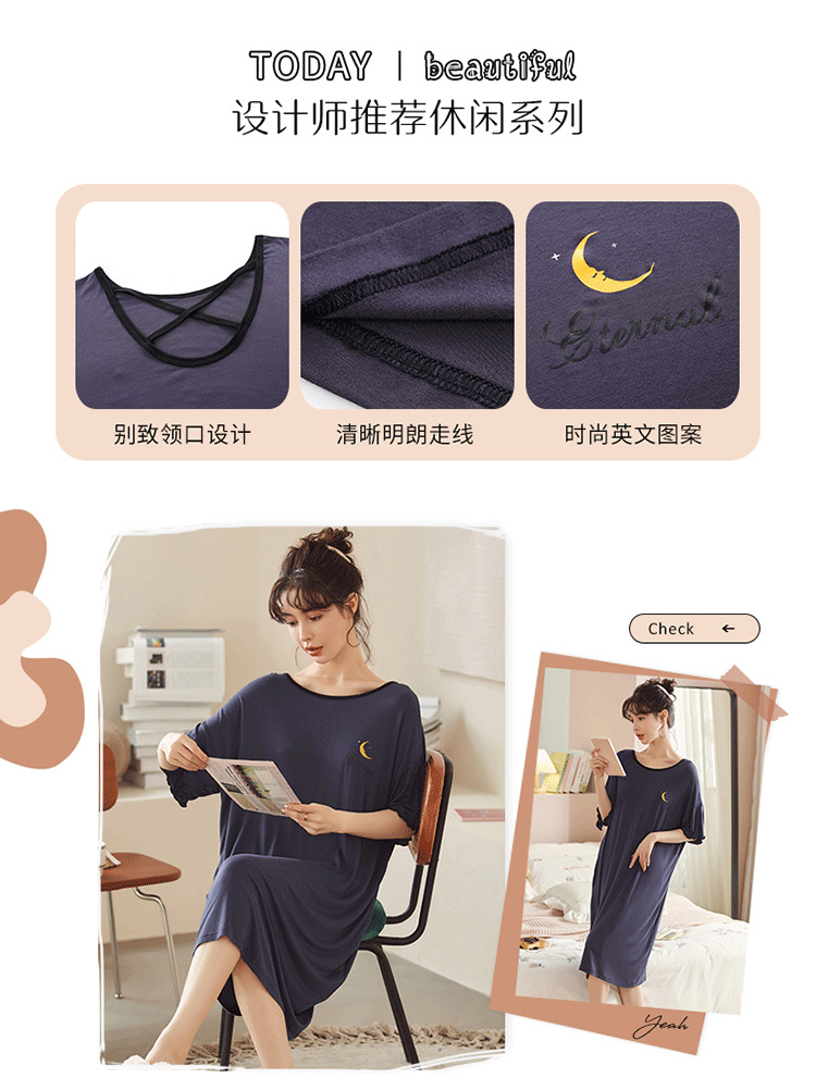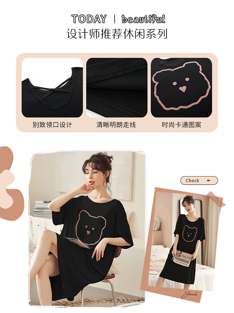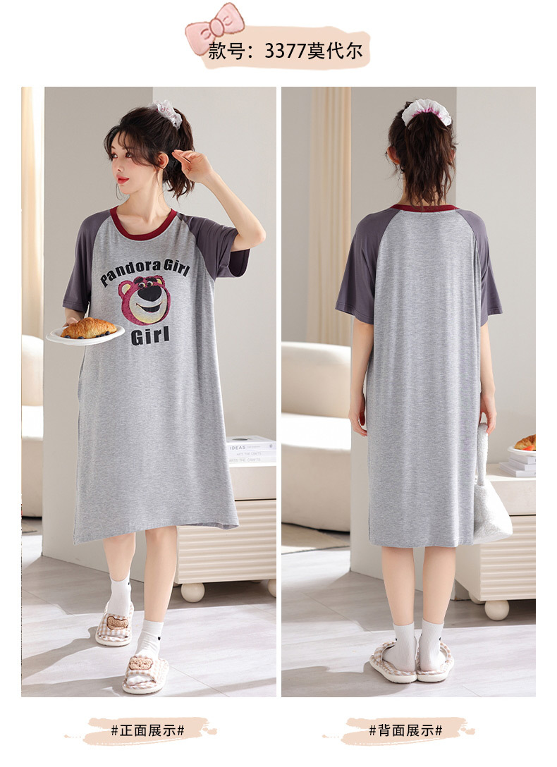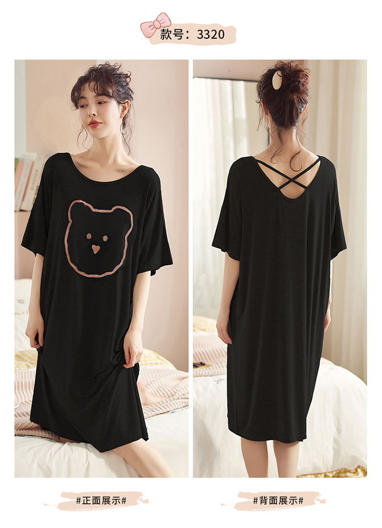 Z25040126自備胸墊一體式睡裙女款夏季短袖睡裙夏天莫代爾可外穿