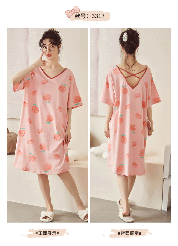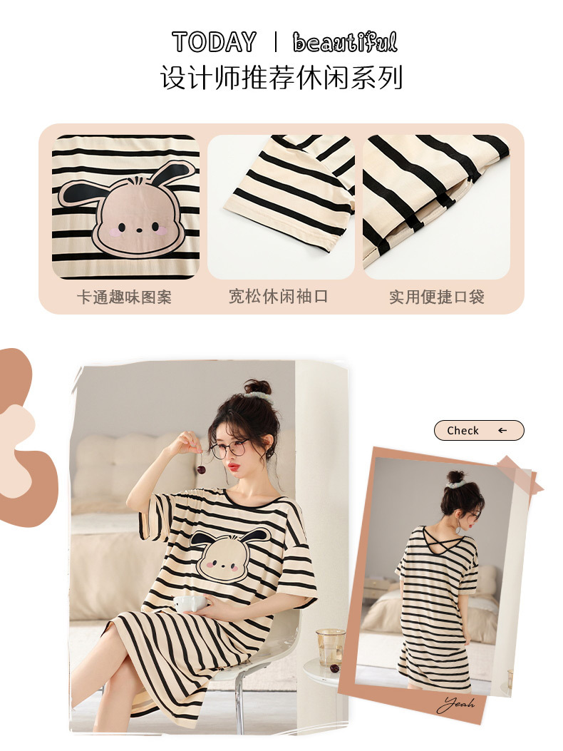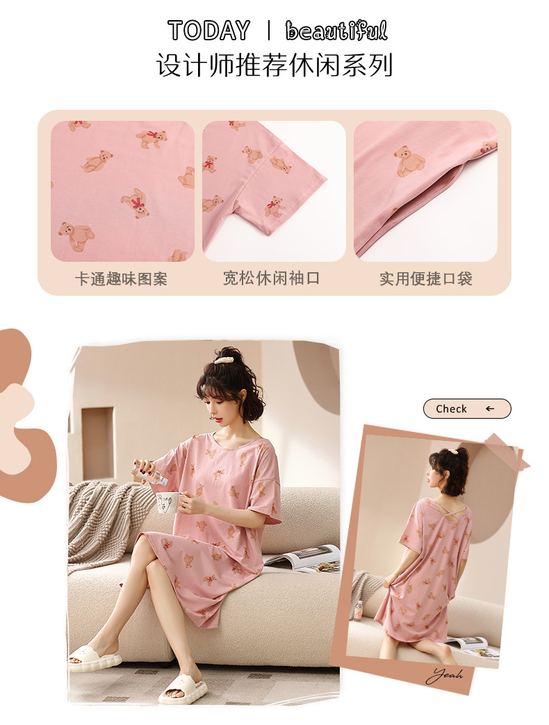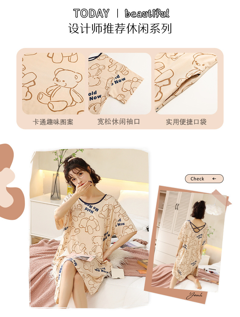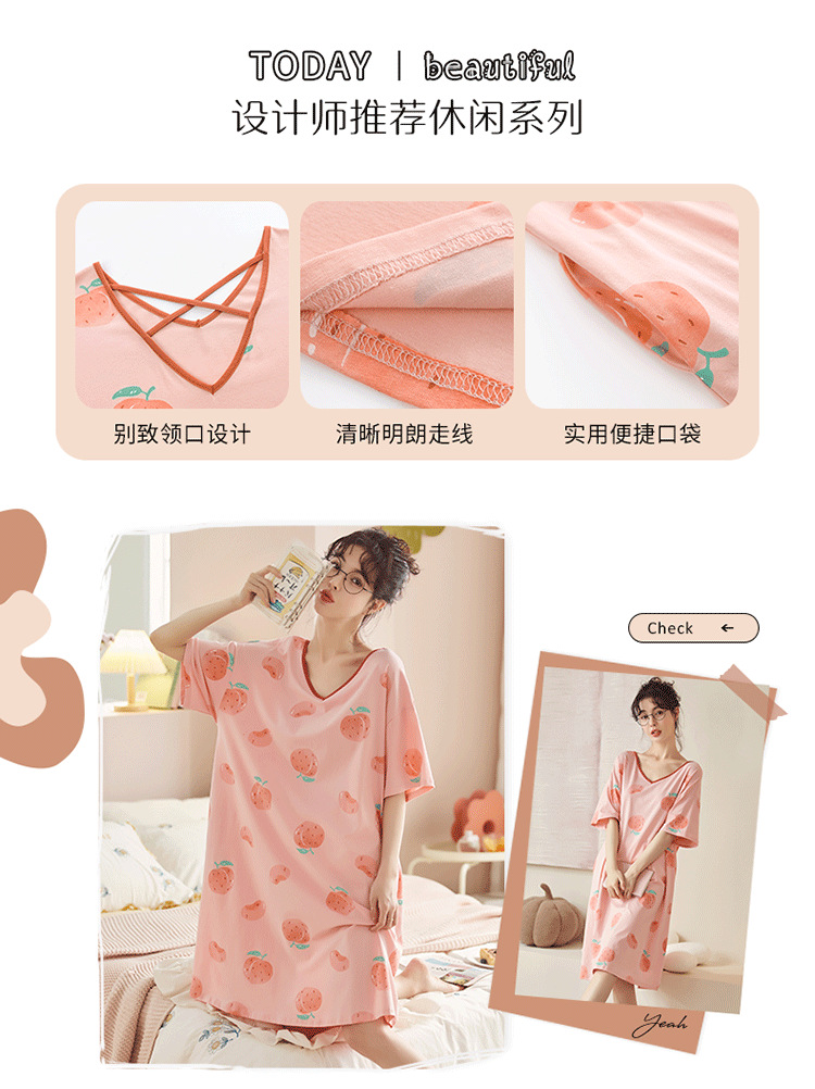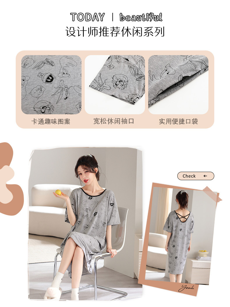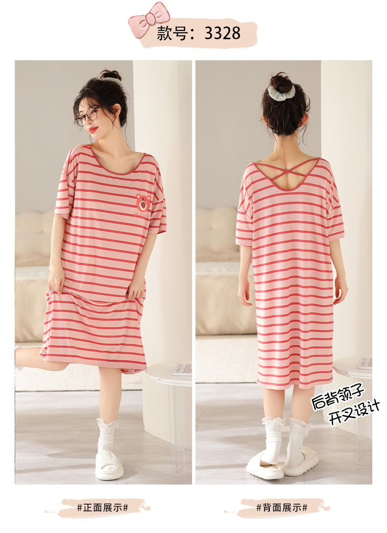 Z25040126自備胸墊一體式睡裙女款夏季短袖睡裙夏天莫代爾可外穿