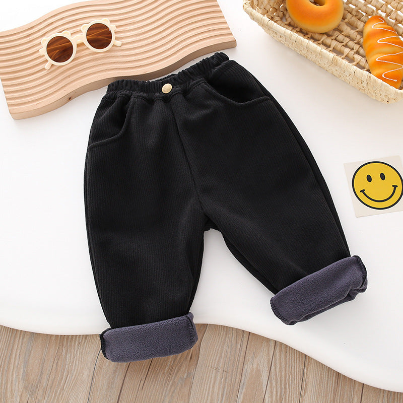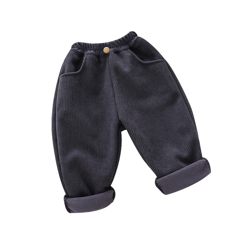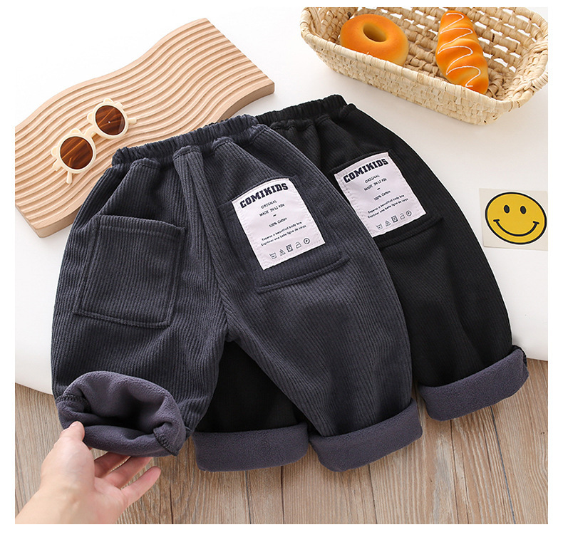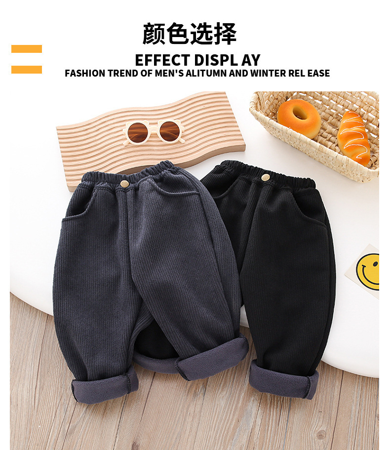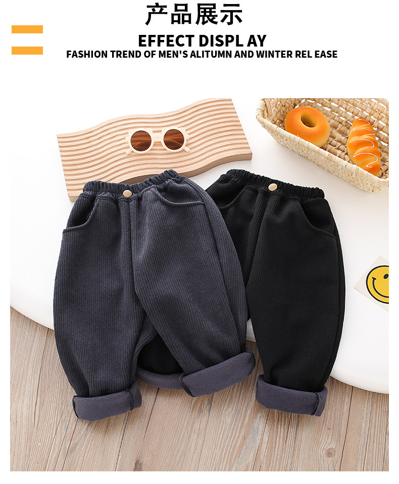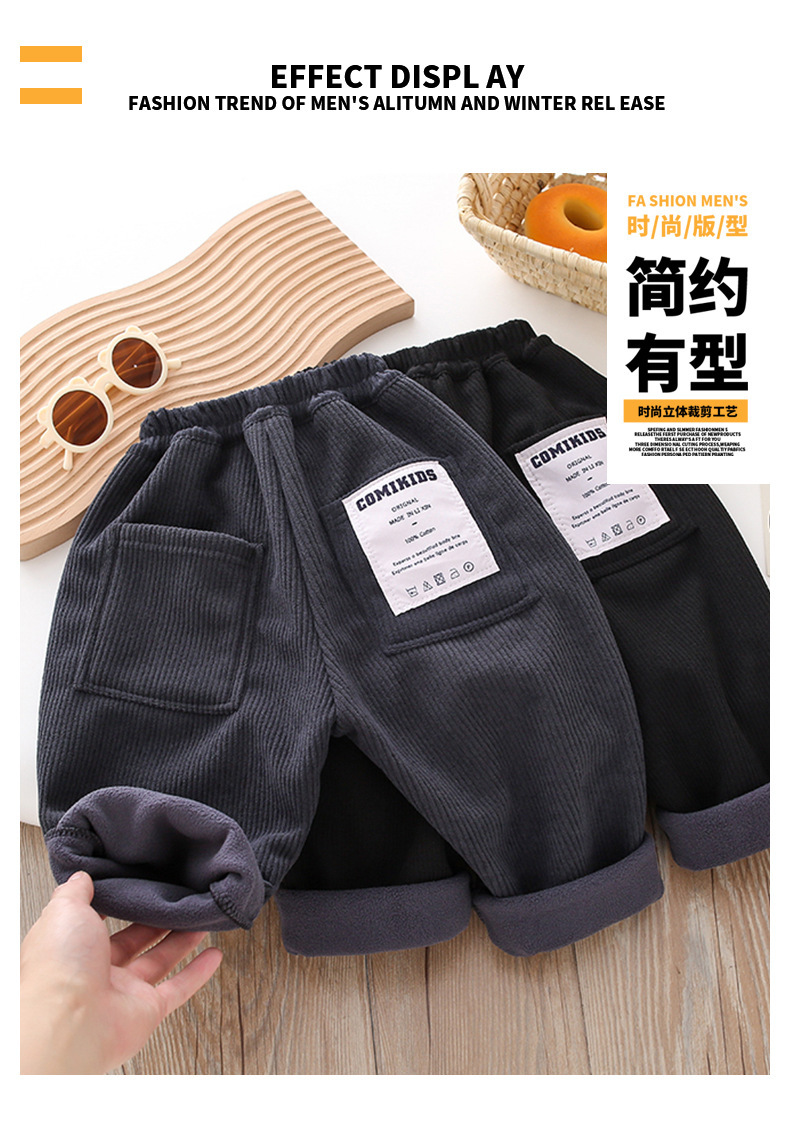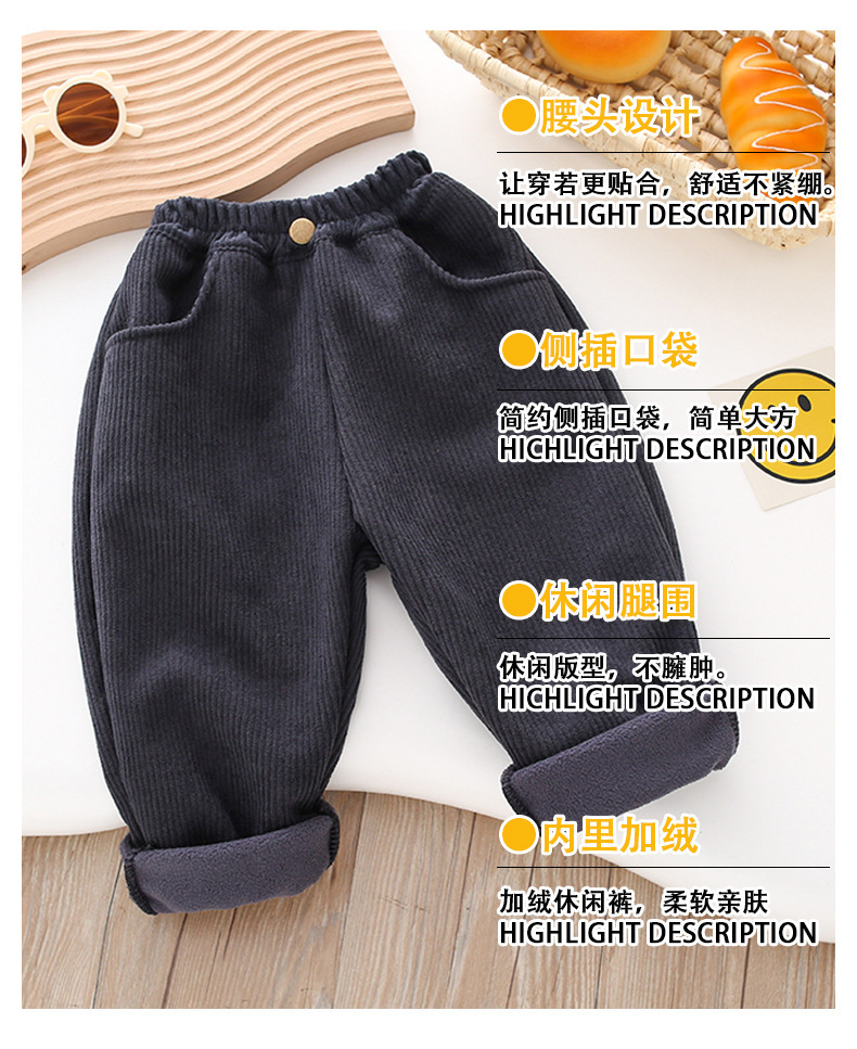 Z26010117男童冬季加絨褲子2025兒童燈芯絨洋氣加厚中小童秋冬一體加絨休閒褲