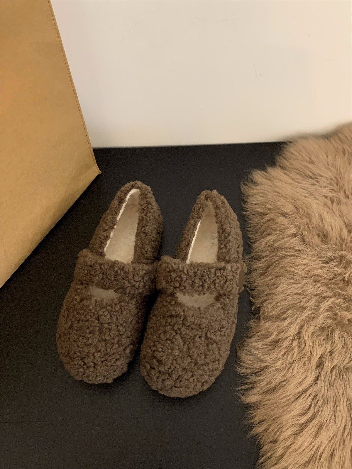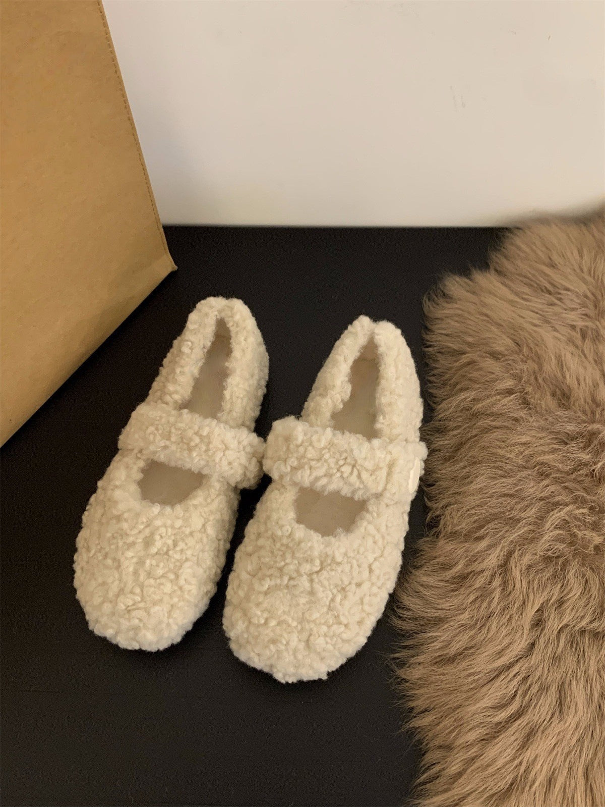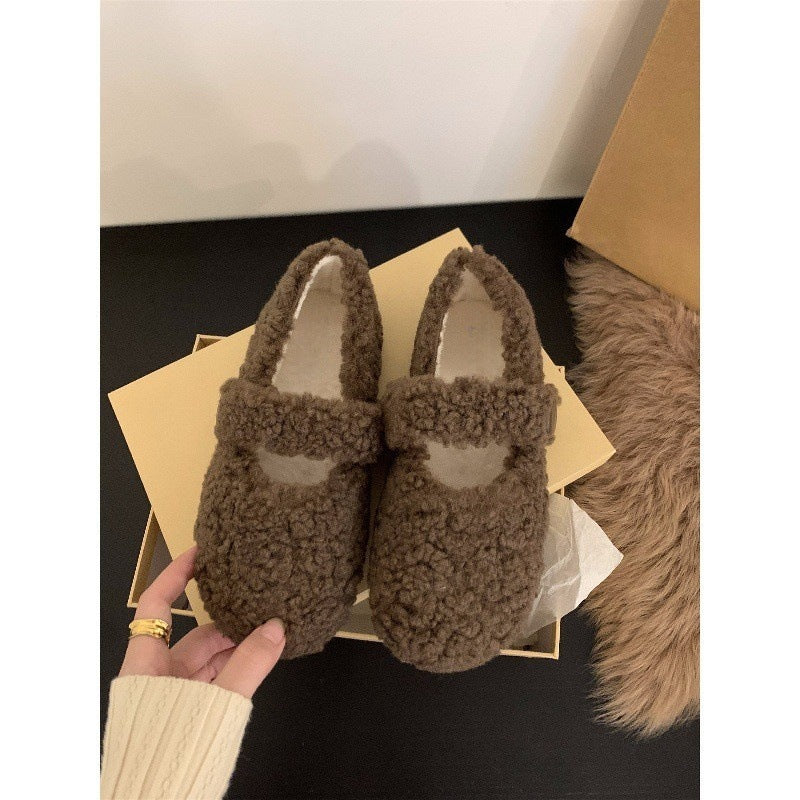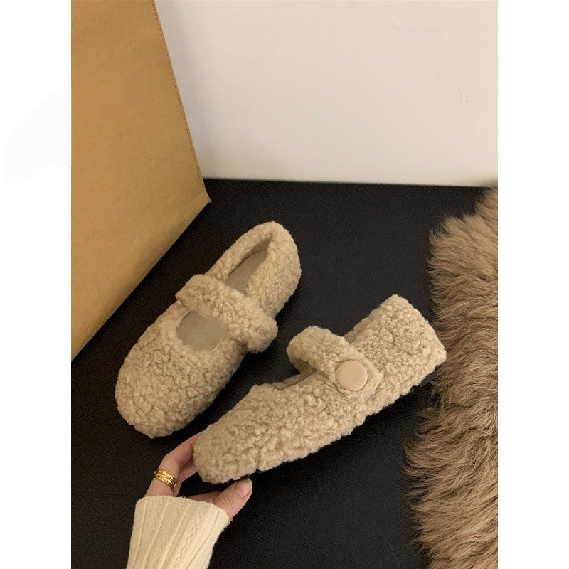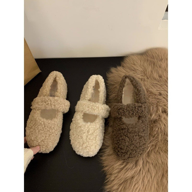 Z26010120平底百搭瑪莉珍毛毛鞋女鞋外穿2025新款秋季冬季加絨棉鞋單鞋