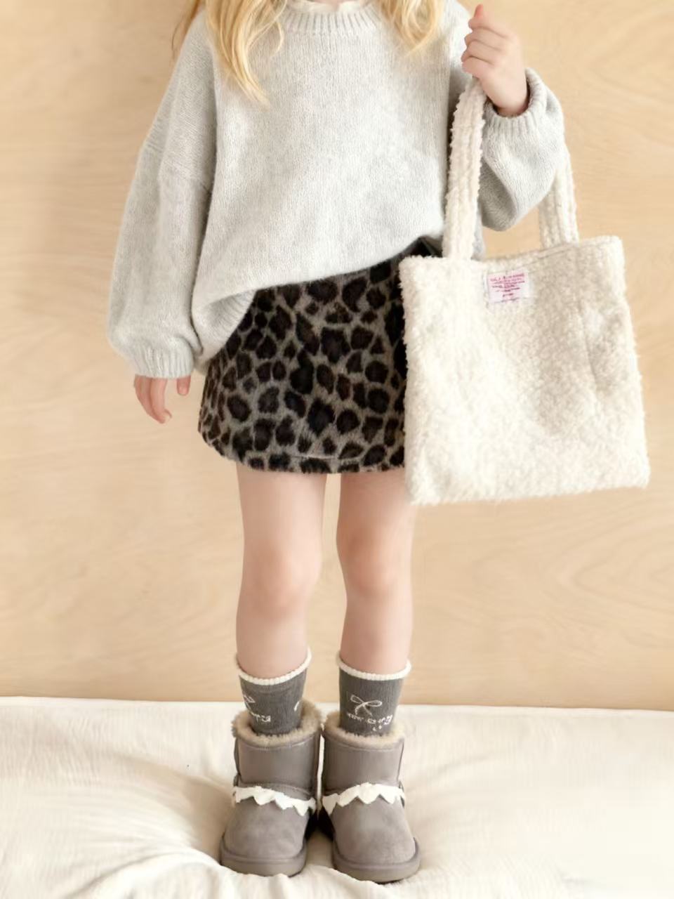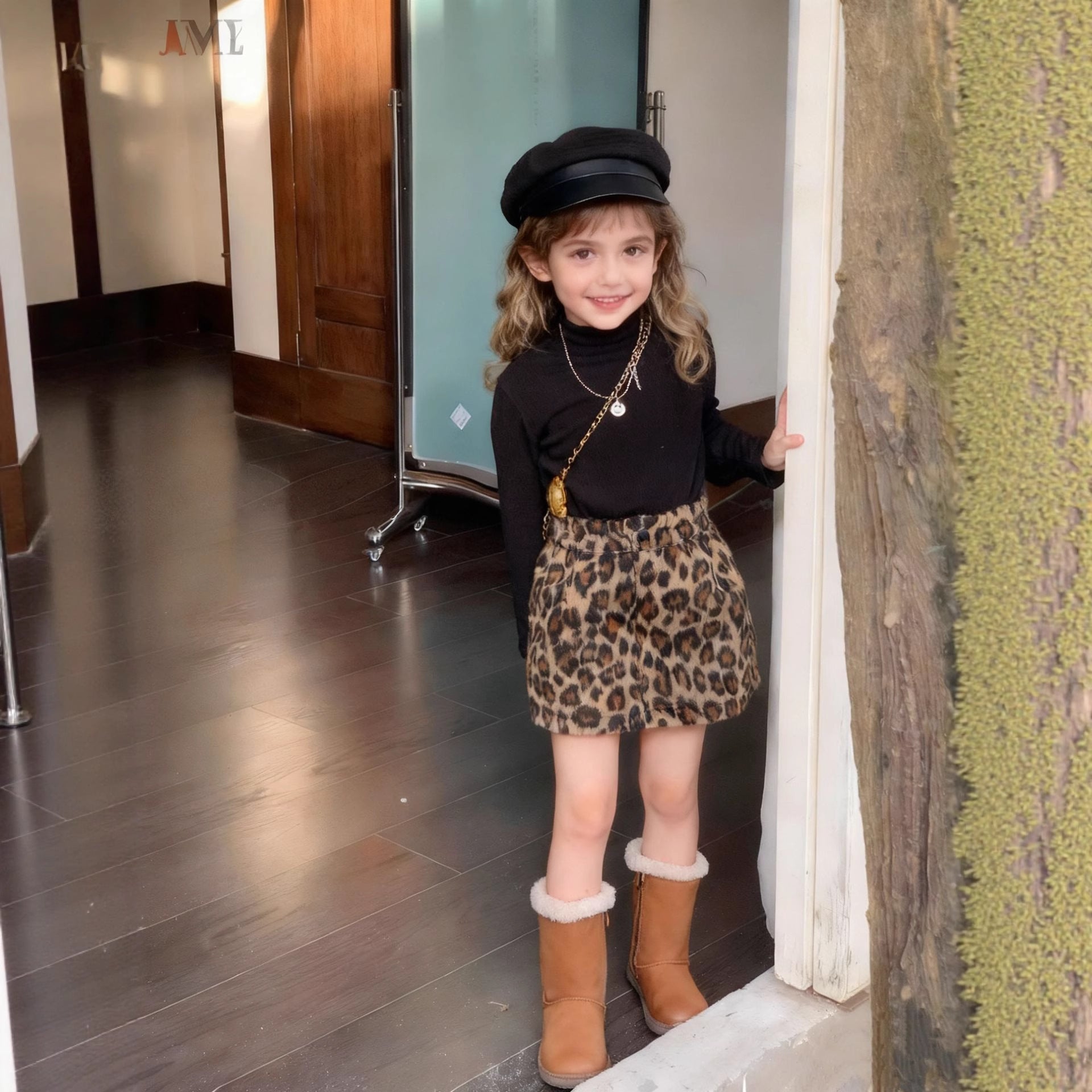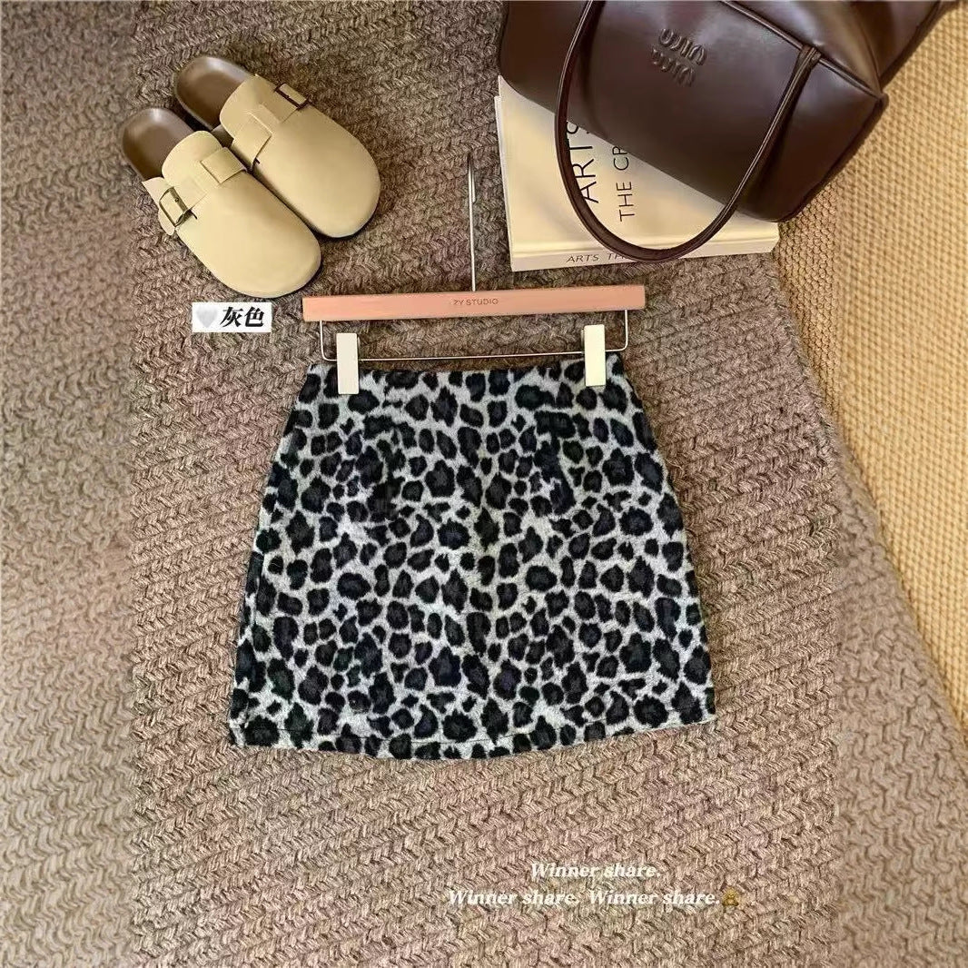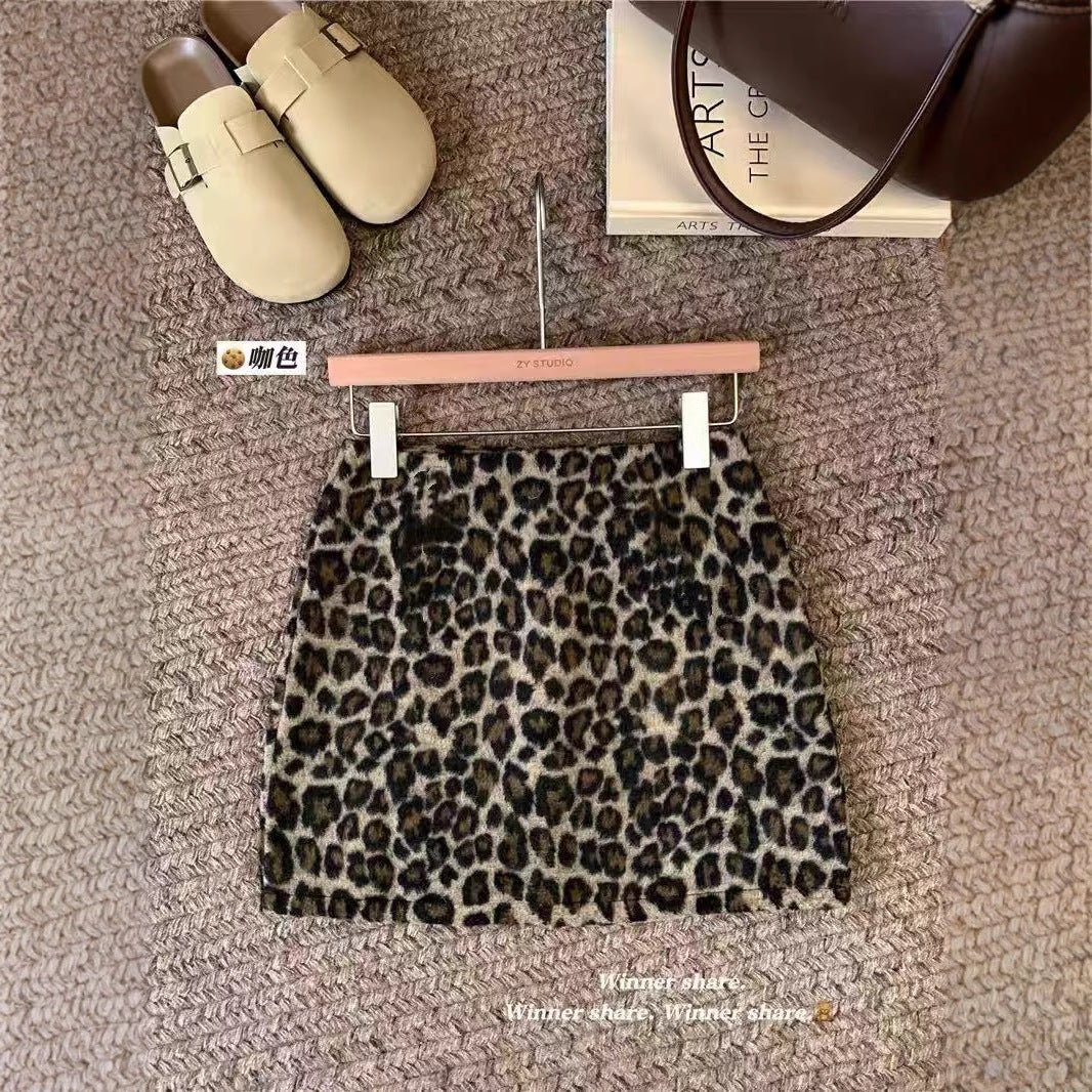 Z26010126女童半身裙2025秋冬新款韓版豹紋毛呢美式復古辣妹高腰短裙