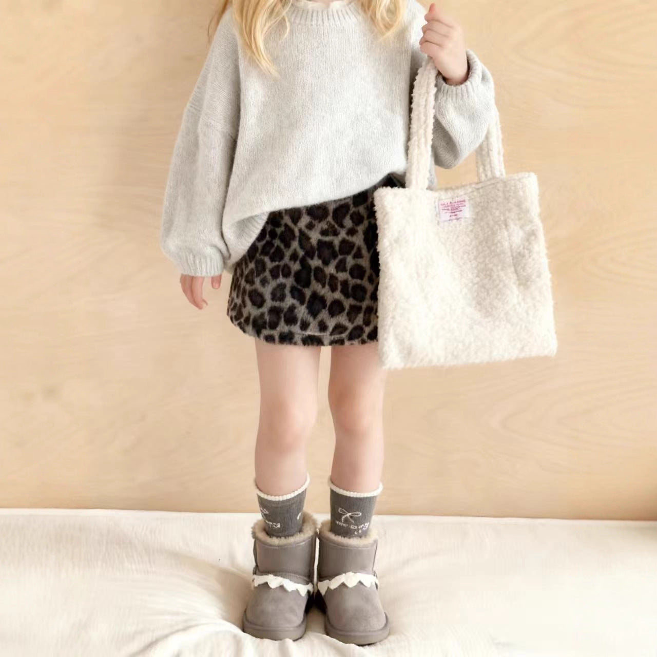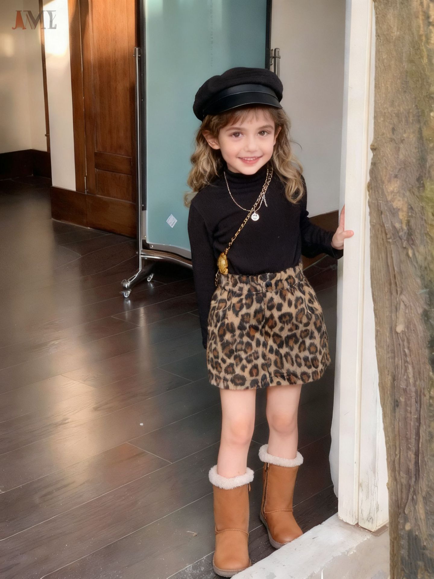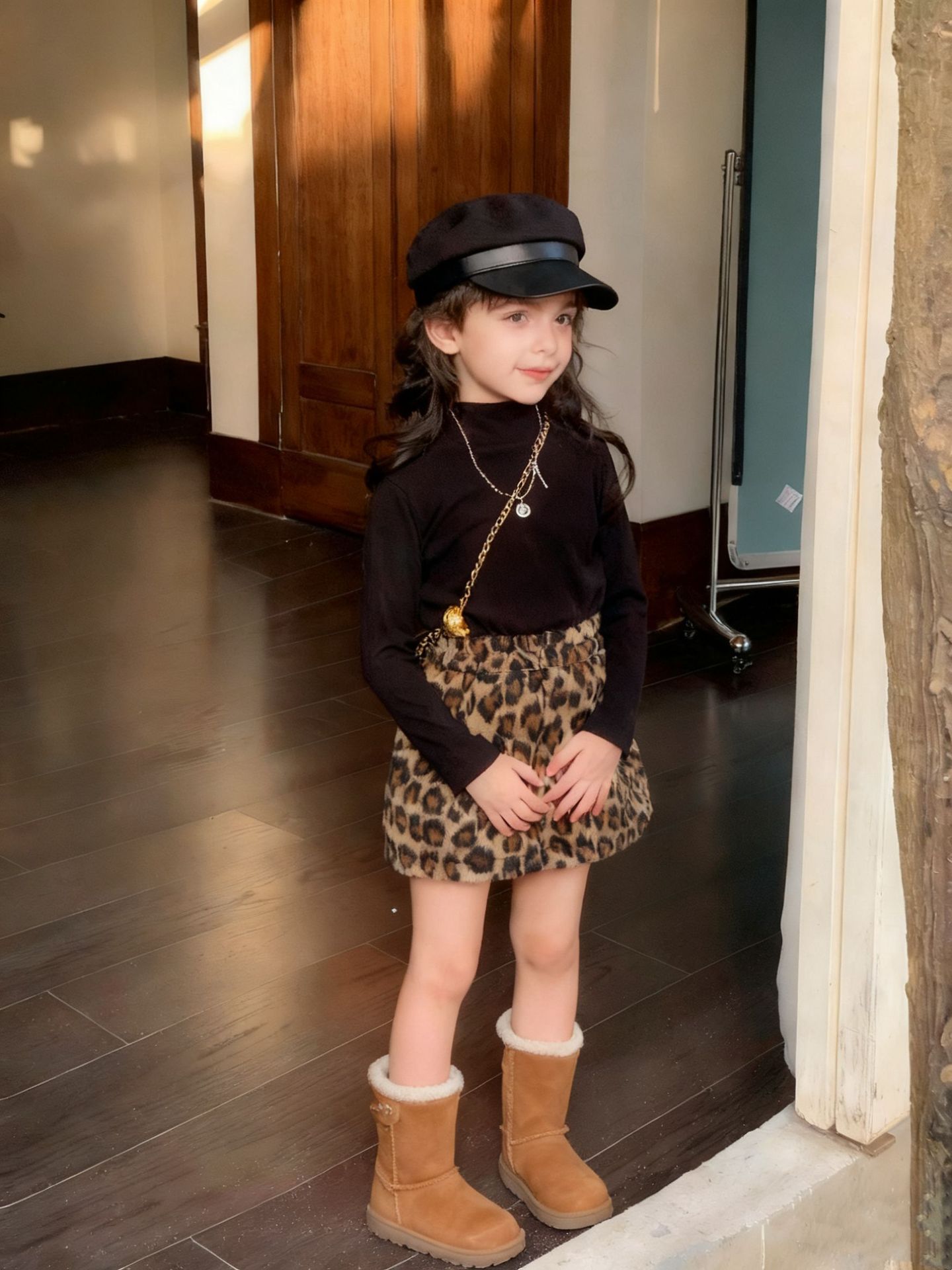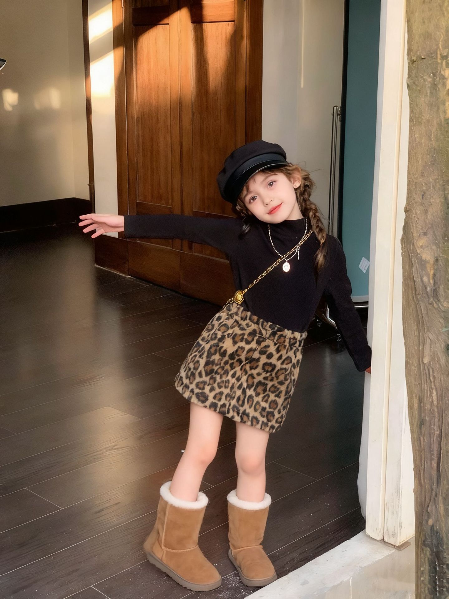 Z26010126女童半身裙2025秋冬新款韓版豹紋毛呢美式復古辣妹高腰短裙