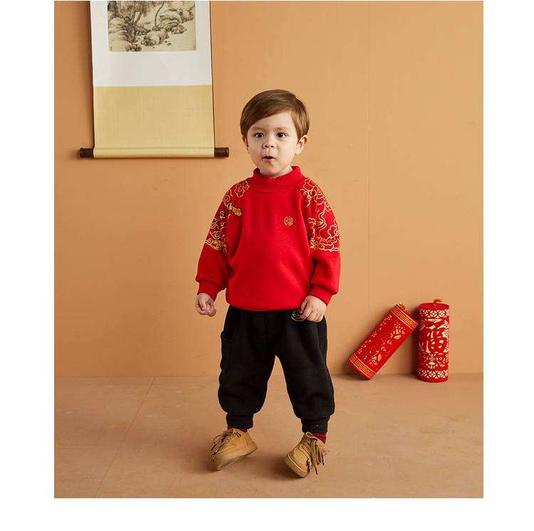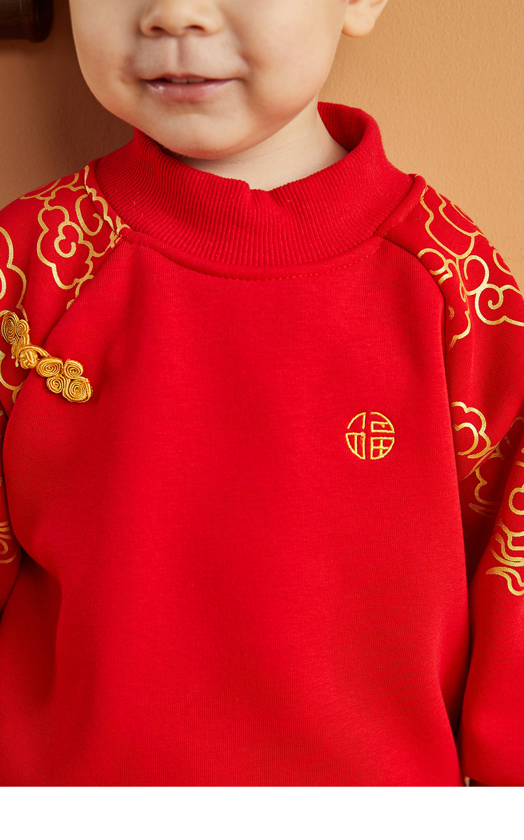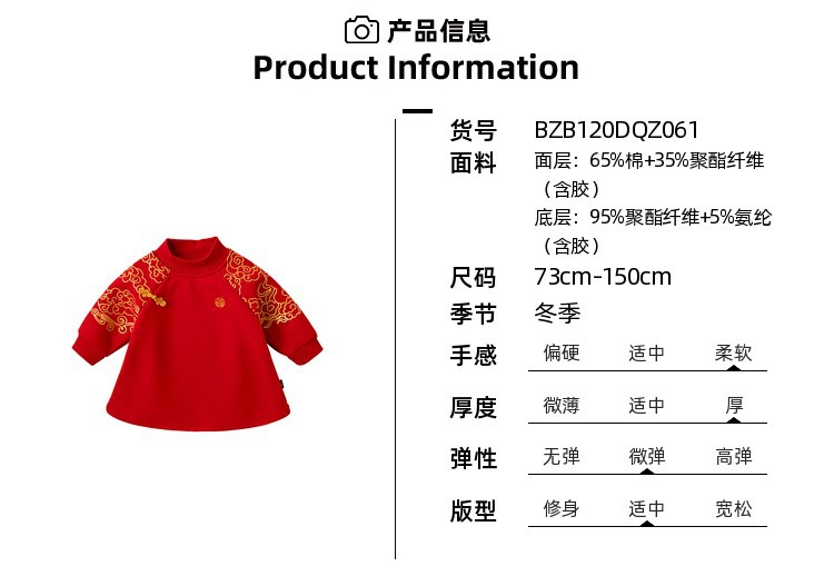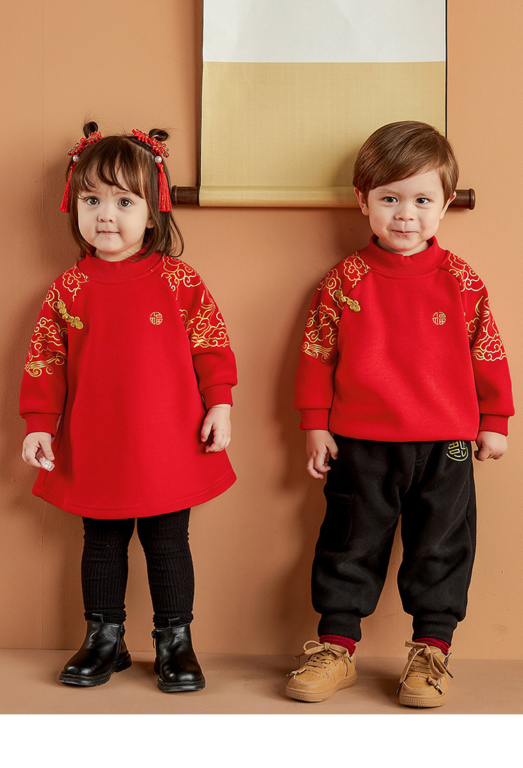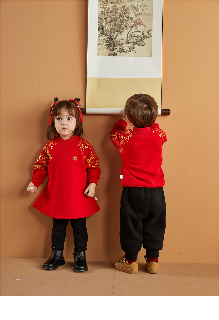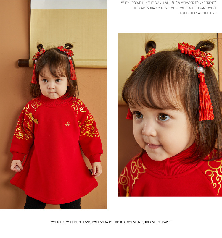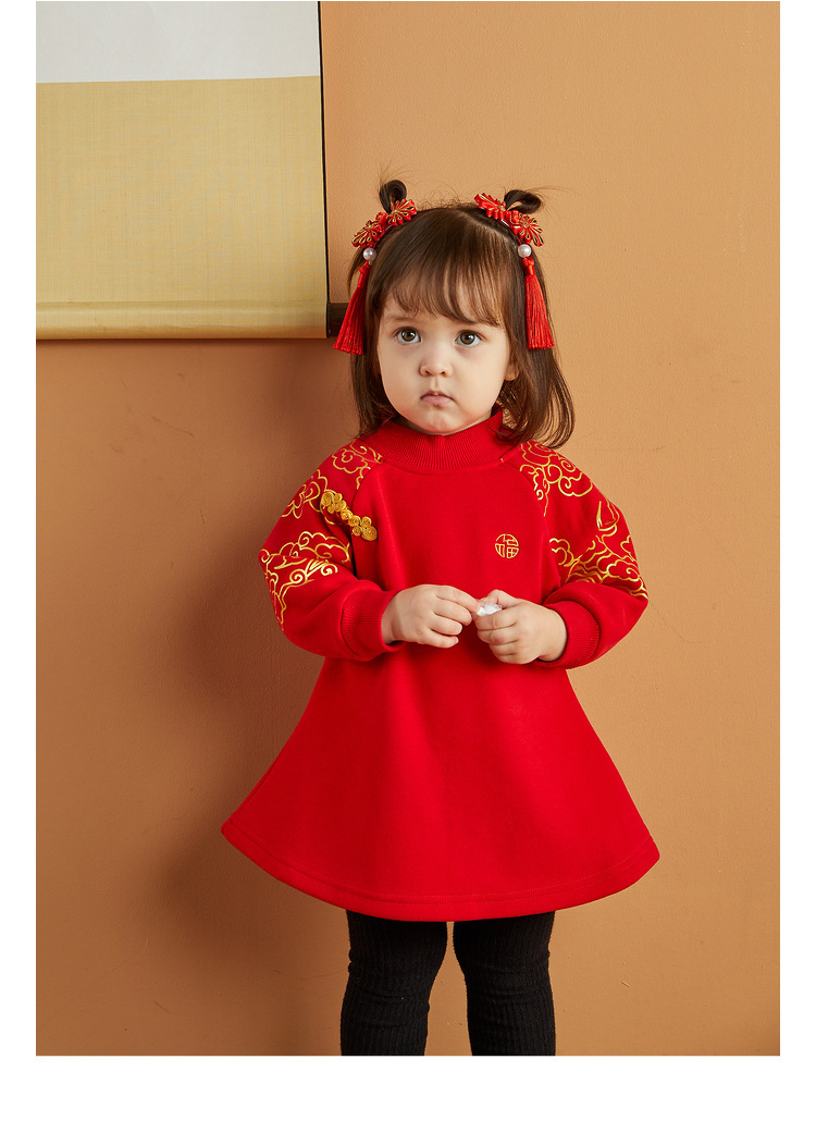 Z26010263寶寶冬季衣服週歲寶寶冬季過年式衛衣女寶寶冬洋裝紅色拜年服