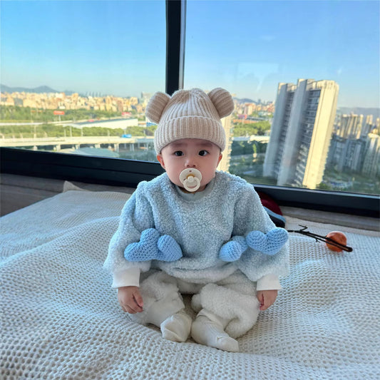 CA25112709男童加絨衛衣秋冬裝中小童卡通洋氣套頭衫2023新款兒童一體絨上衣